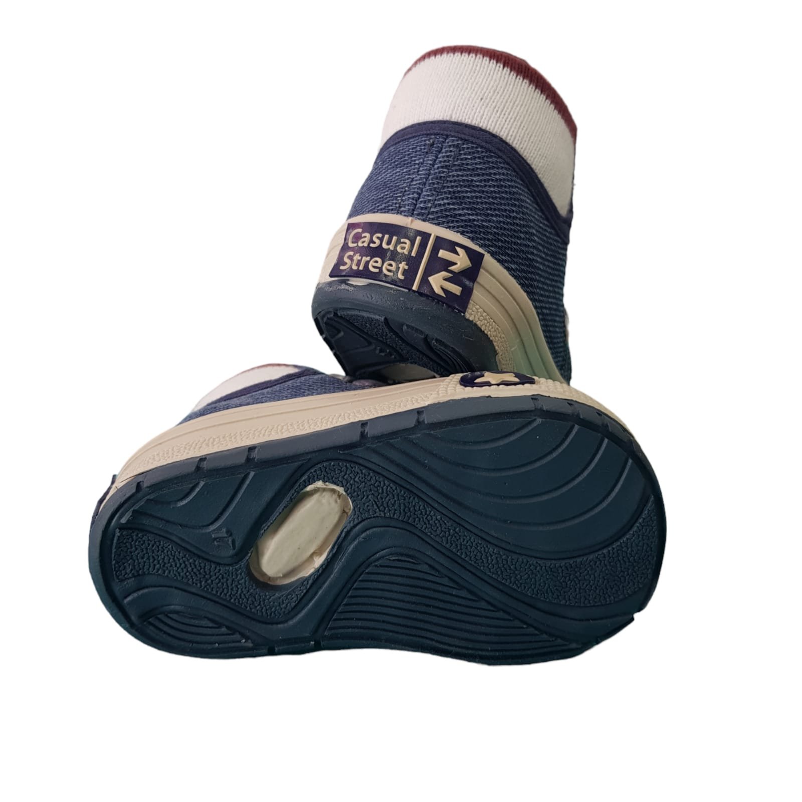 Zapatilla baby línea casual. Con planta y puntera de goma. Capellada de jean acordonada y cuello elástico.