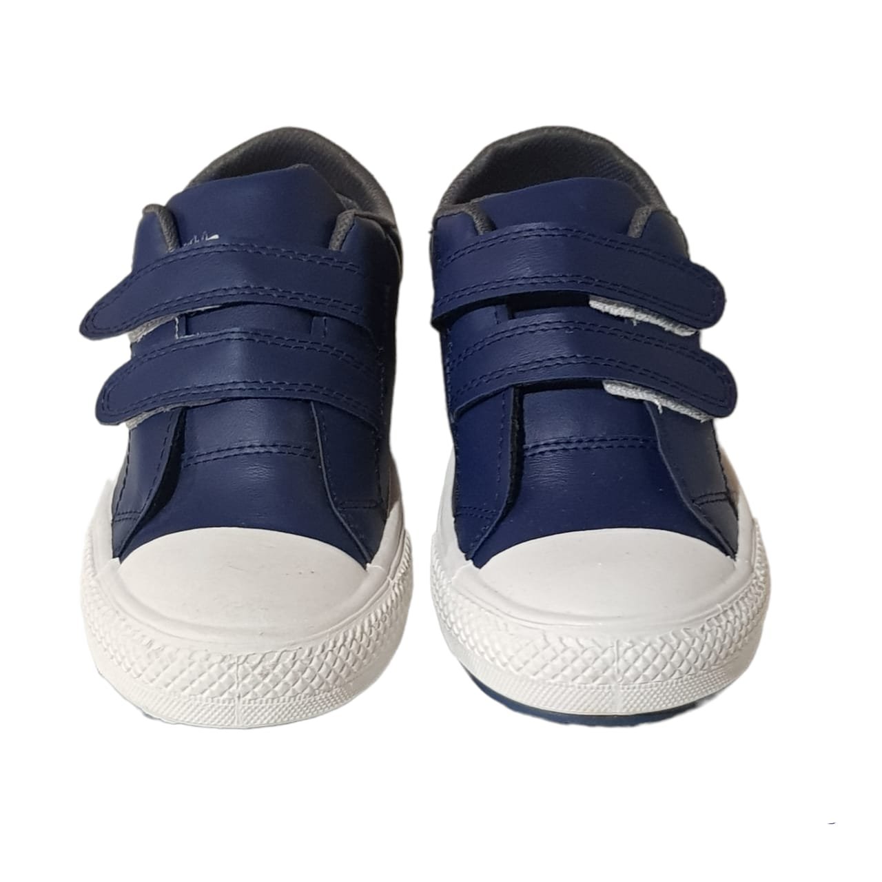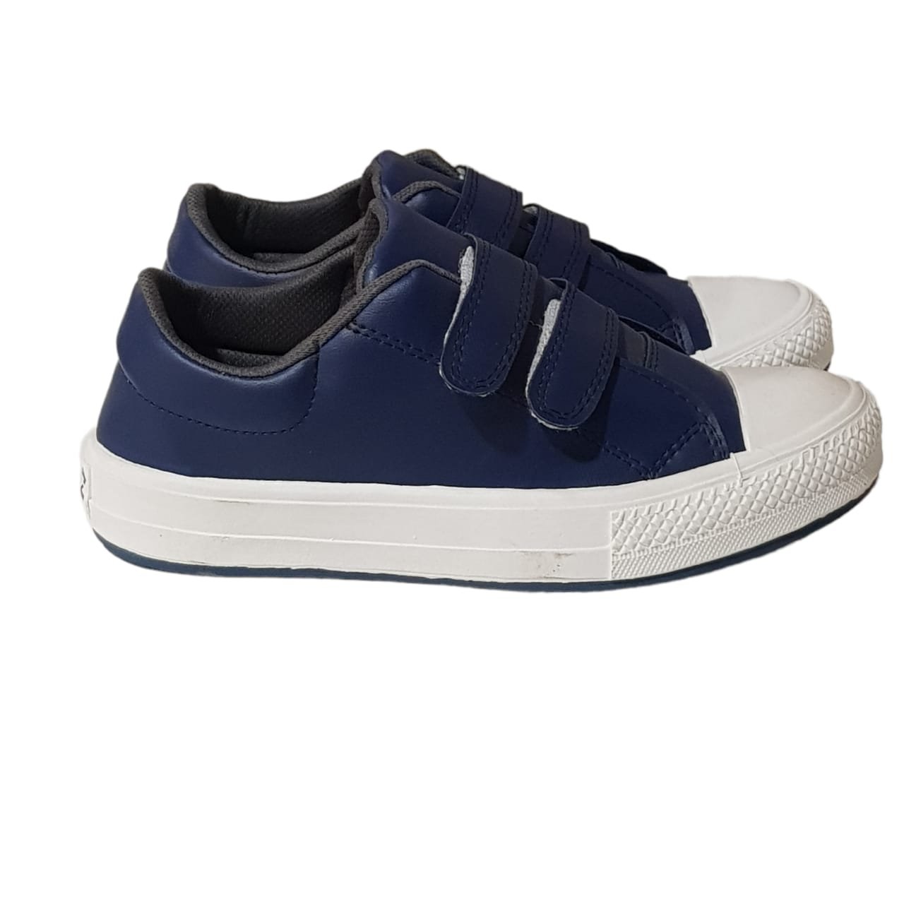 Zapatillas símil cuero con velcro y puntera .