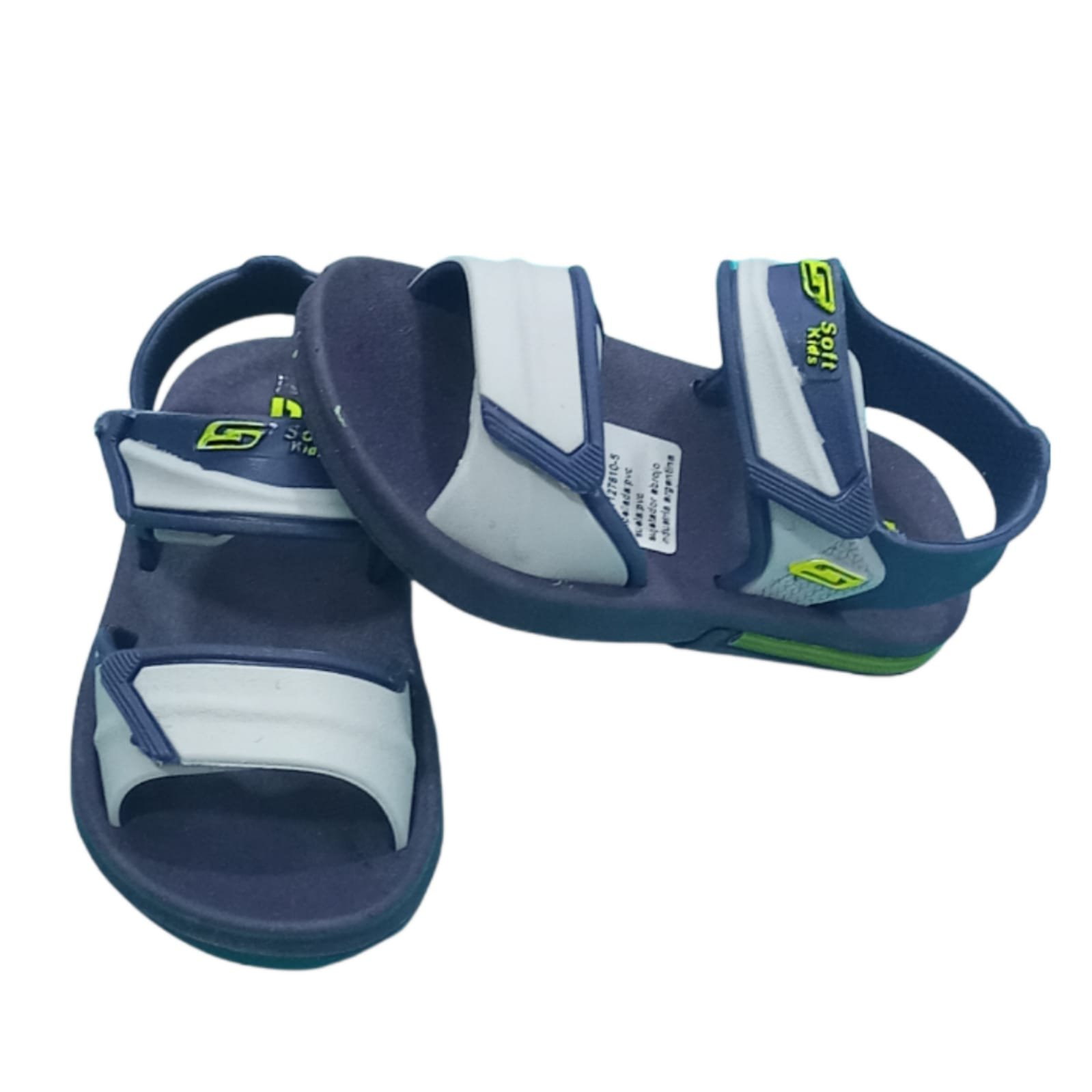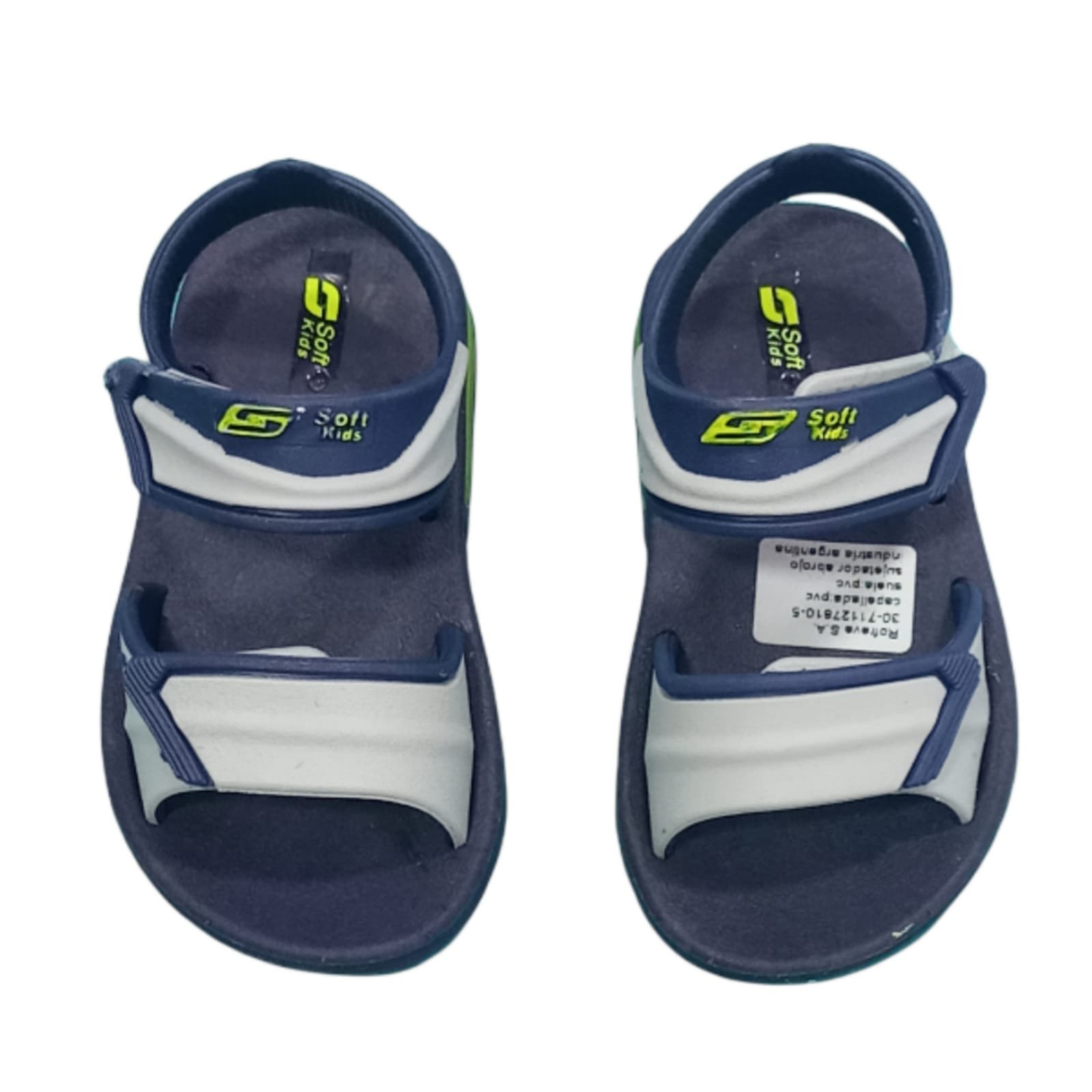 Agua sandalia de goma con capellada de tiras con velcro. Liviana y flexible.