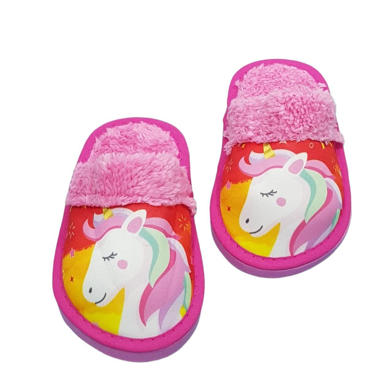 Pantuflas sin talón. Con estampa personajes. Interior de corderito y planta de goma liviana y flexible.