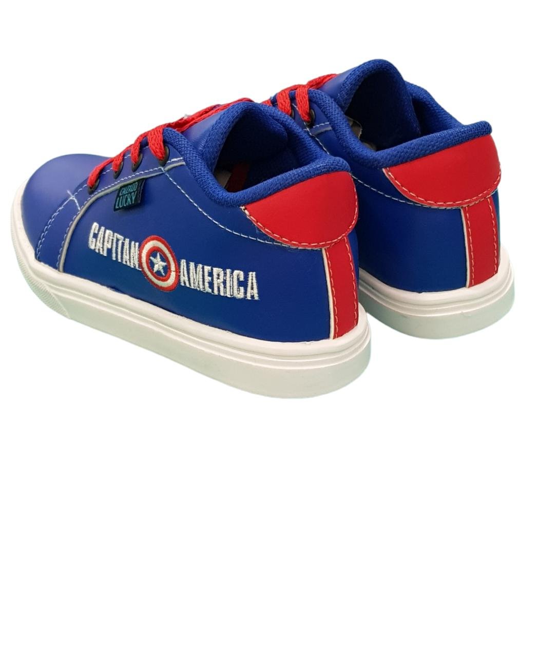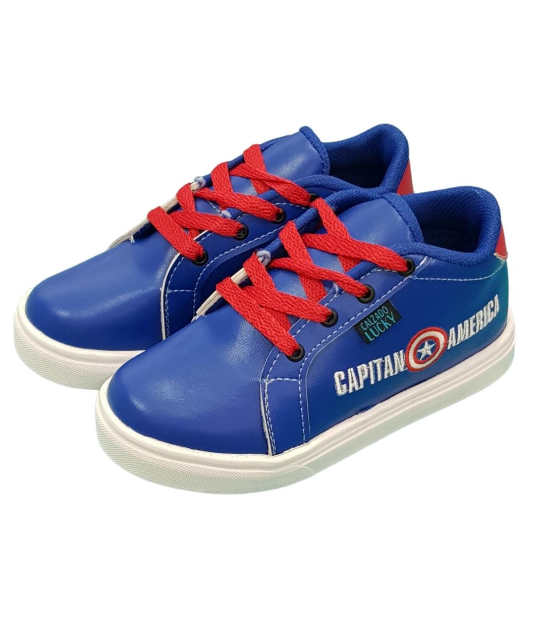Zapatilla personaje confeccionada en símil cuero resistente con capellada acordonada. Planta de goma liviana y flexible.