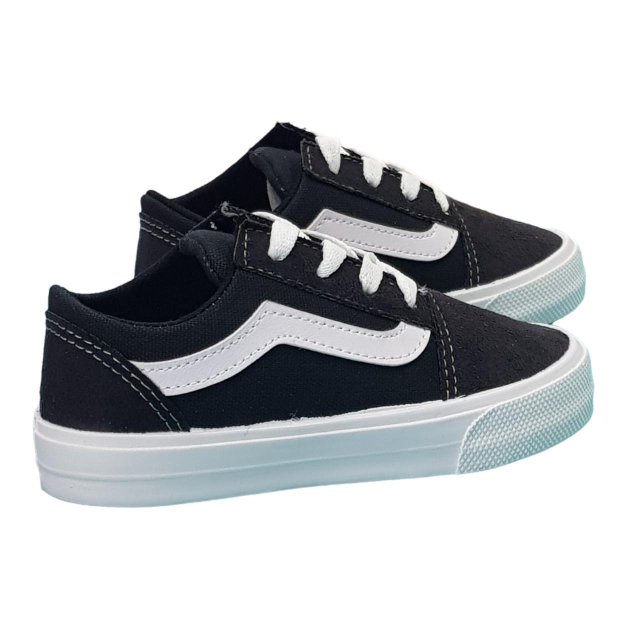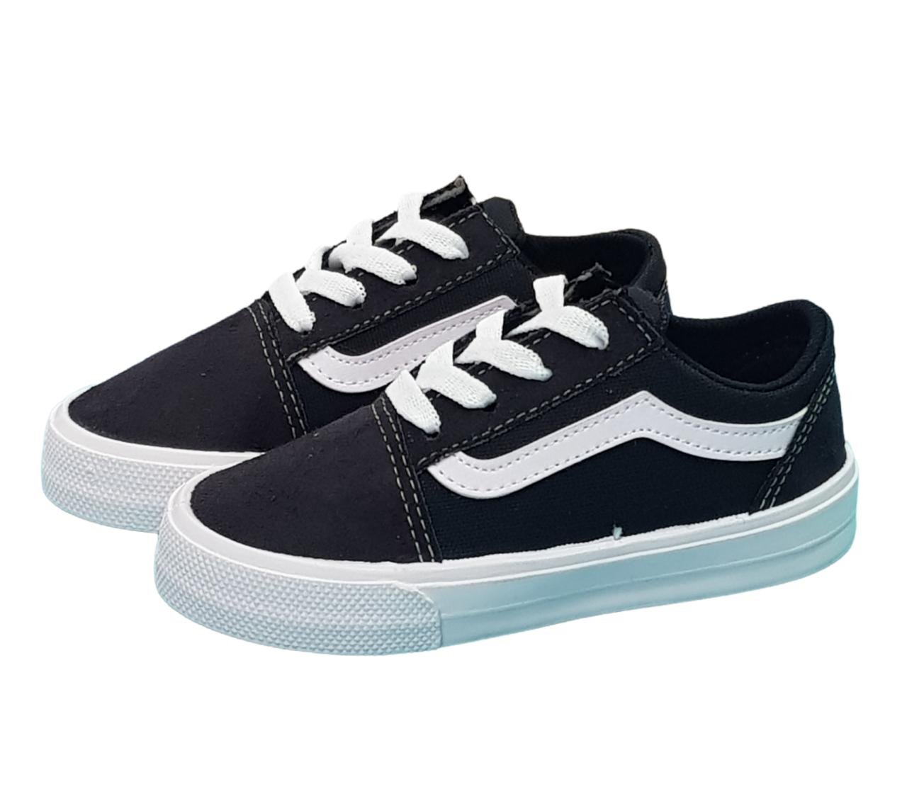 Zapatilla casual con capellada combinada entre lona negro y lona gamuzada con cordones. Panta de goma liviana y flexible.