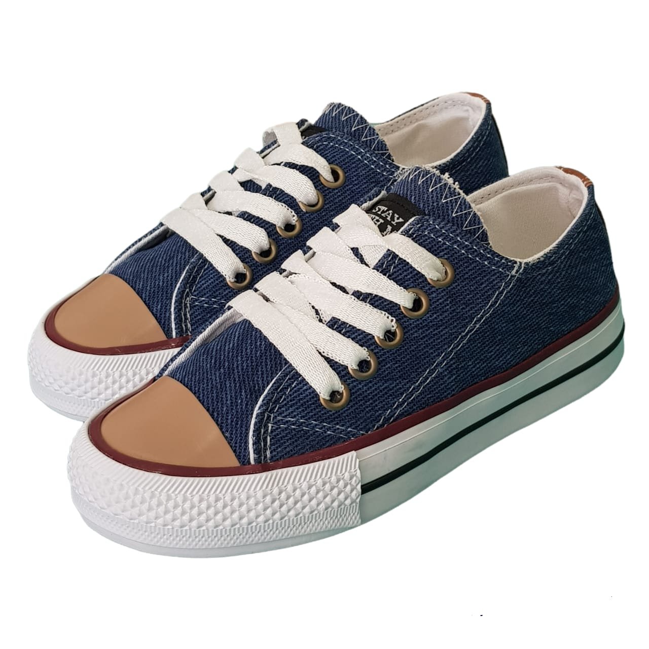 Zapatillas de lona con cordones. Puntera y viro de goma. Y planta de caucho ranurado.