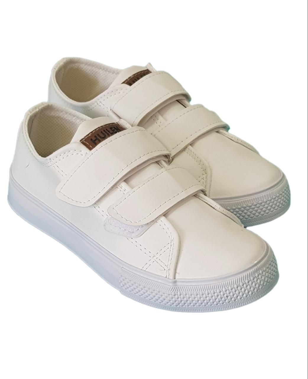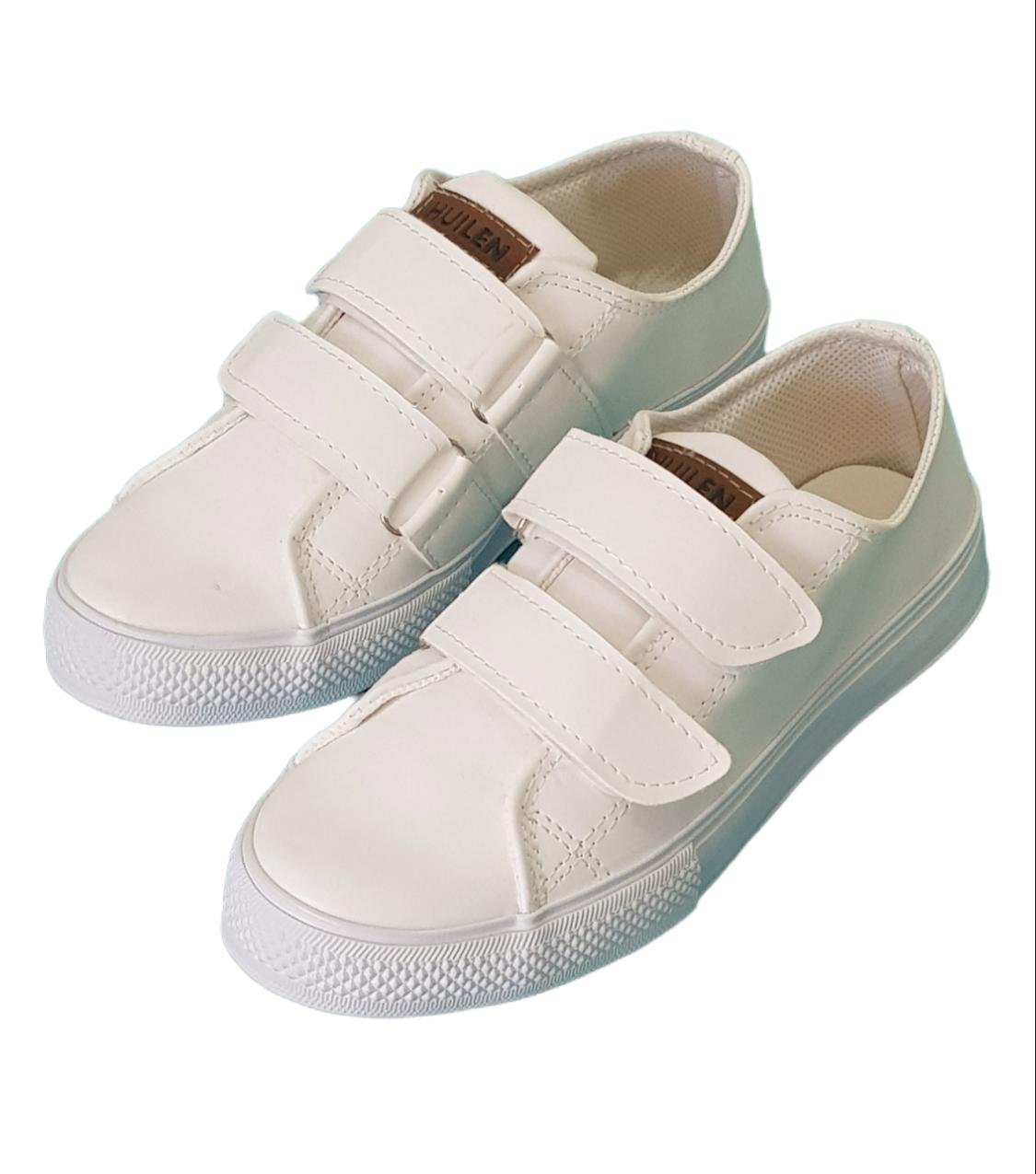 Zapatillas estilo casual con doble velcro. Capellada de símil cuero color blanco. Planta con viro rugoso delantero y viro liso. De máxima flexibilidad.