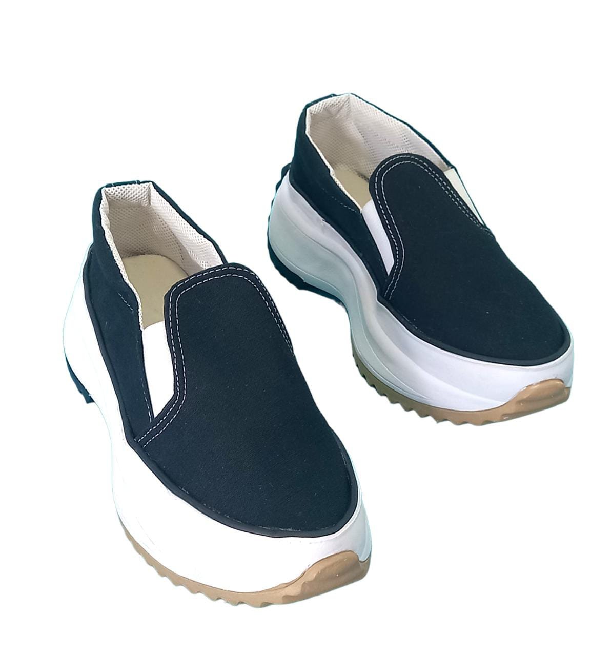 Zapatilla casual, planta alta llanurada de goma, con capellada de lona y detalles de elasticos.