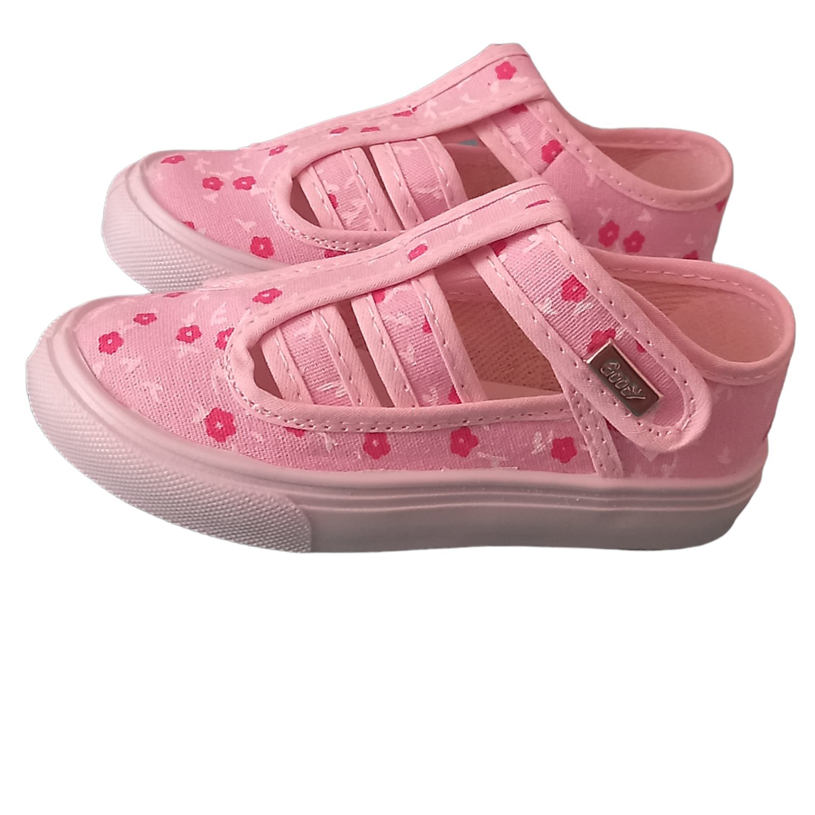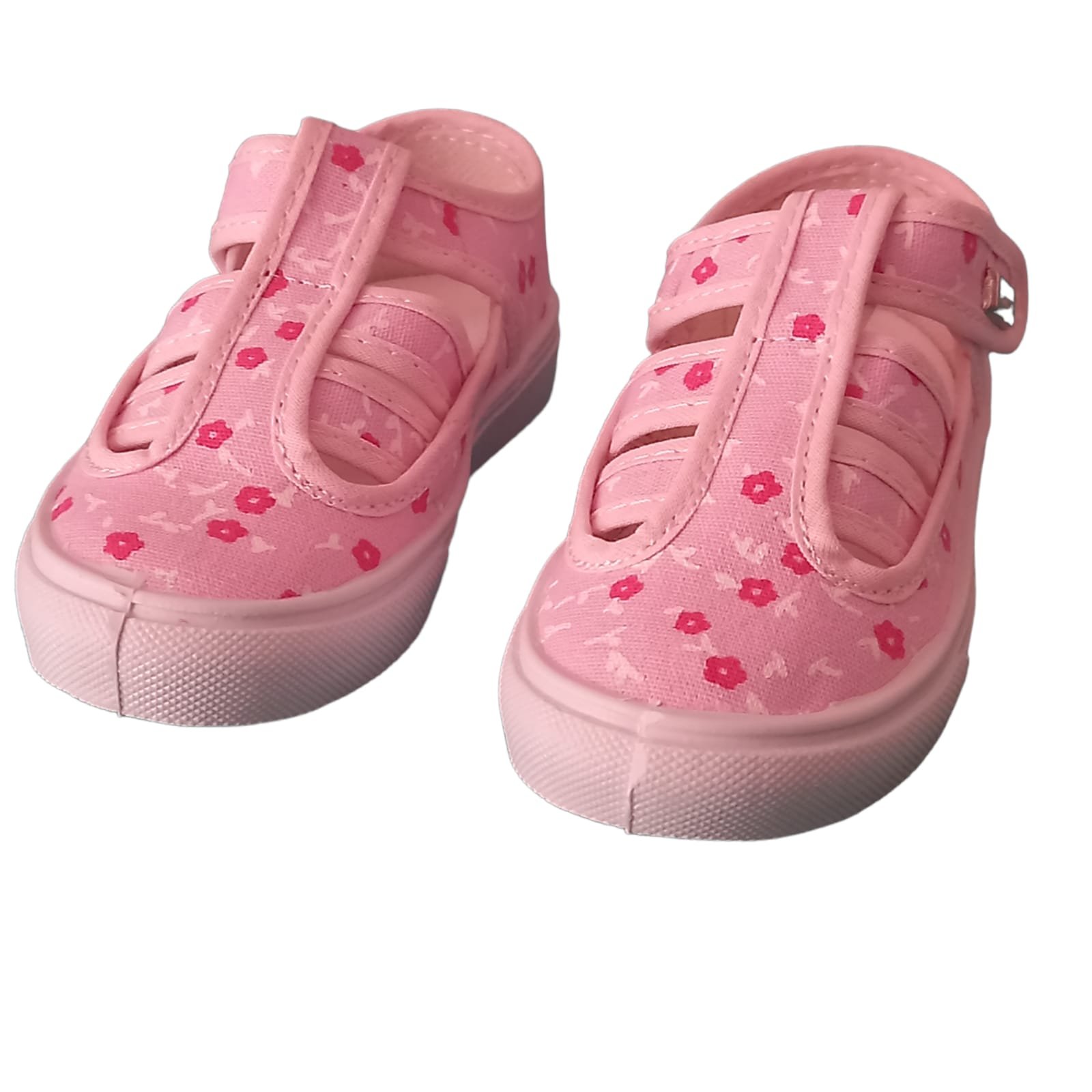 Guillerminas, planta de goma, flexible y liviana. Con capellada de lona estampada, calada, con agarre de velcro.