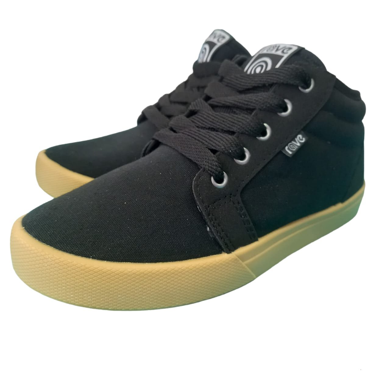 Zapatillas de lona caña alta con cordones, planta y puntera de goma liviana y flexible.