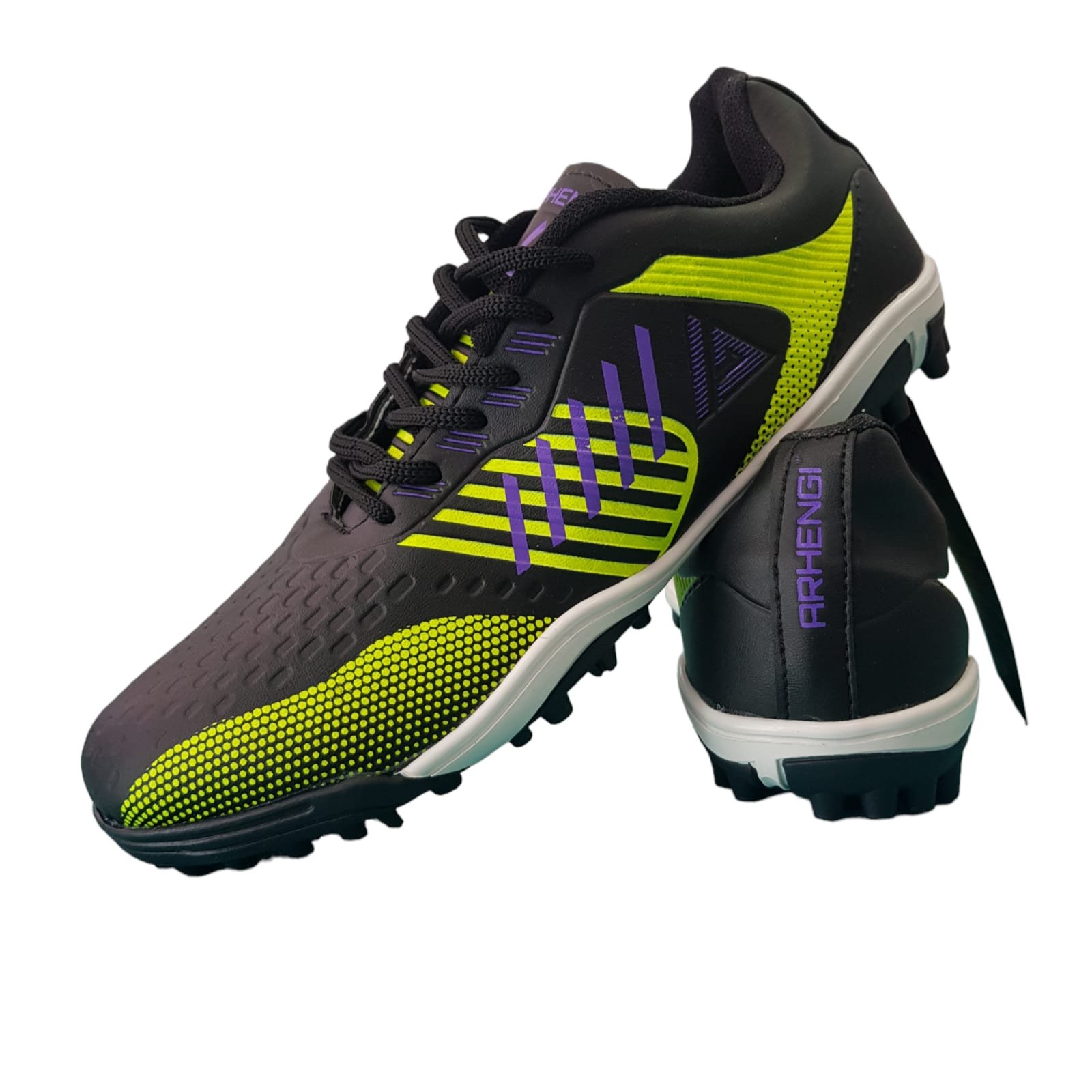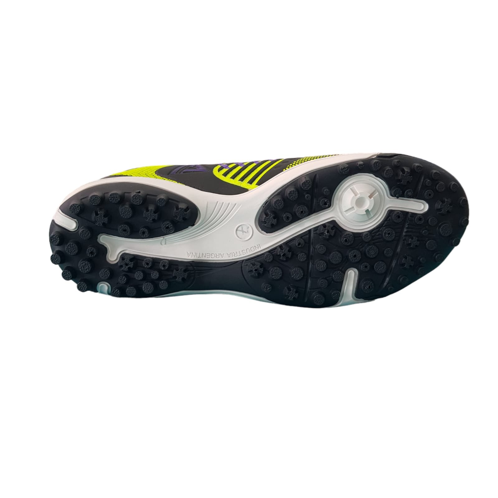 Botín confeccionado en materiales sintéticos con pintura en serigrafía, Suela de PVC. Multi tapones ideal para superficies de pasto sintético.