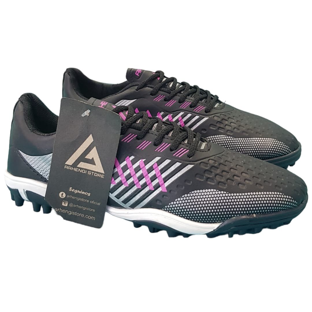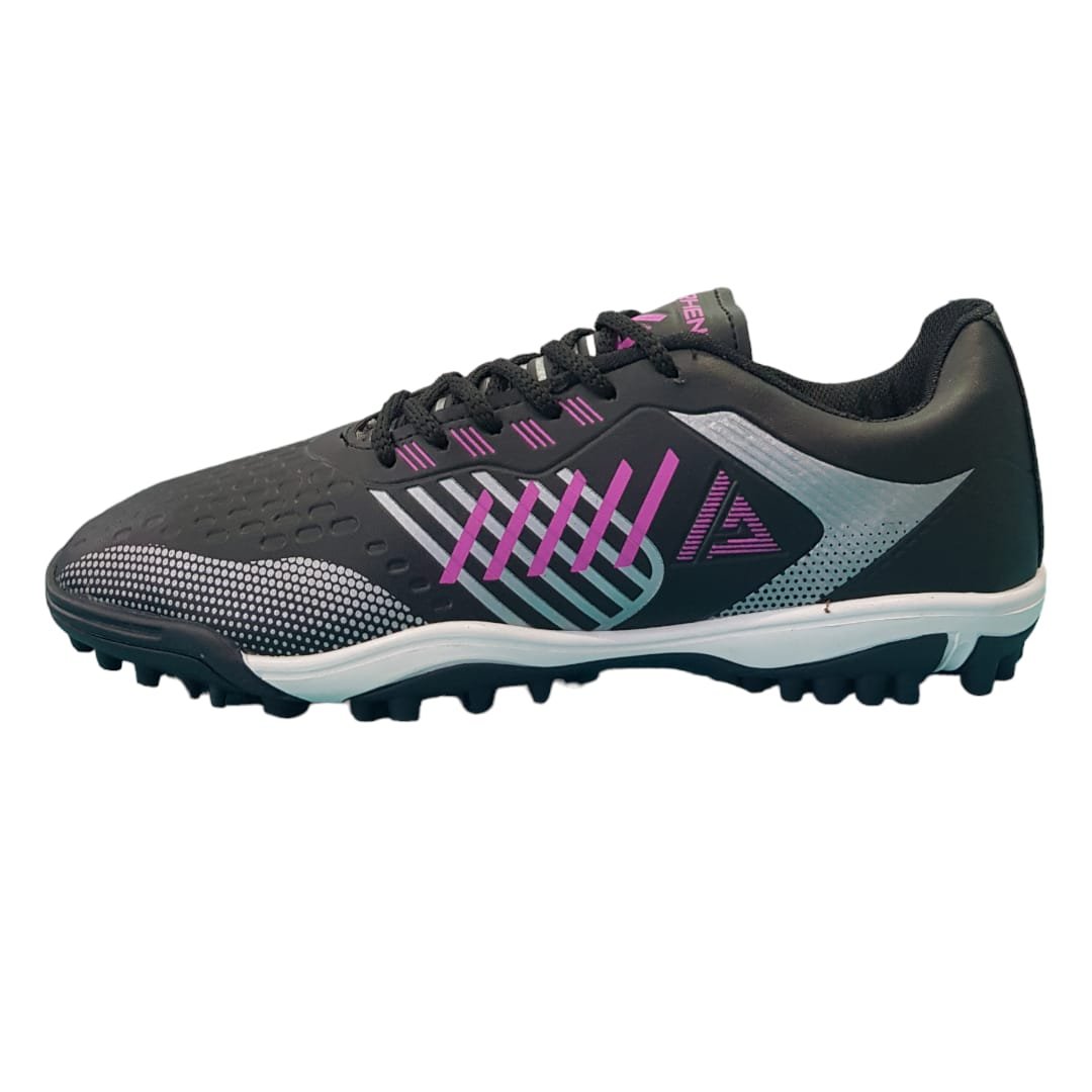 Botín confeccionado en materiales sintéticos con pintura en serigrafía, Suela de PVC. Multitapones ideal para superficies de pasto sintético.