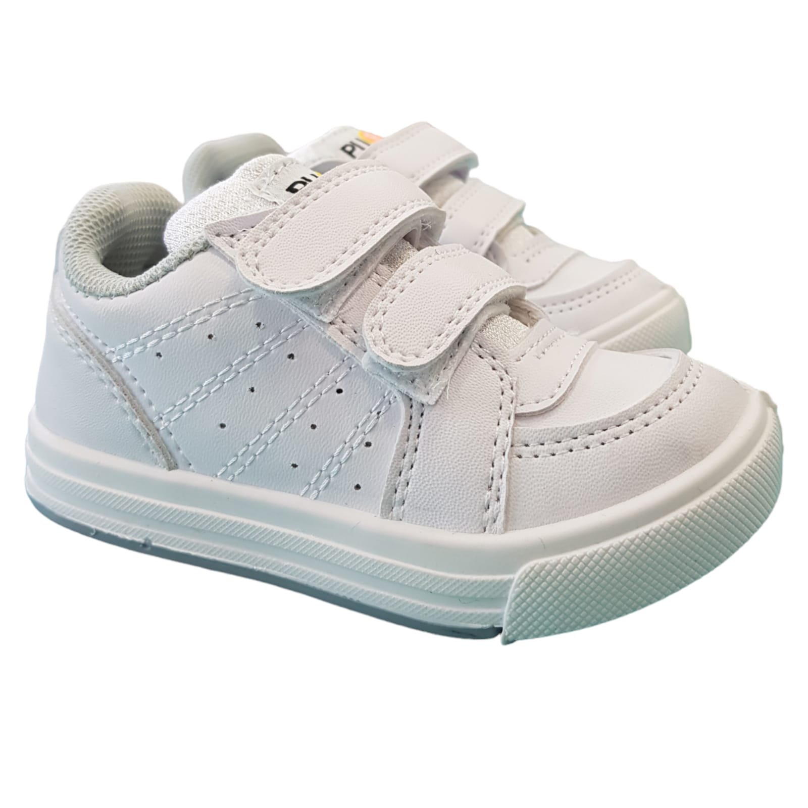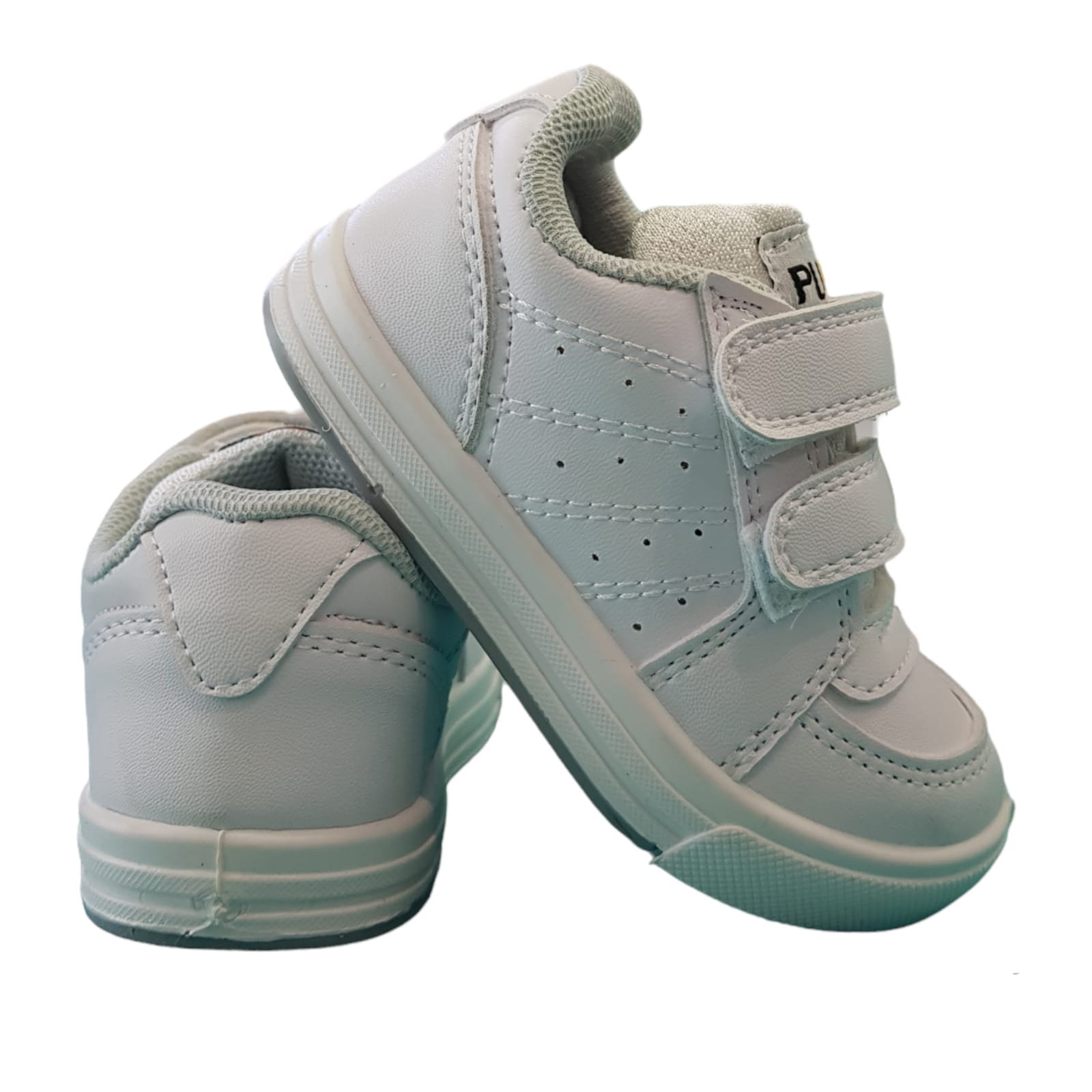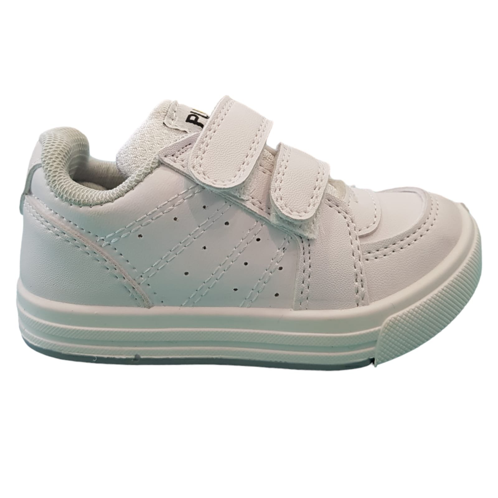 Zapatillas Pups tipo colegiales aptas para cualquier tipo de uso tanto como para ir al colegio, para hacer deportes o simplemente caminar. Su capellada de cuero sintético reforzada. Se ajusta mediante abrojo. Su base es de pvc inyectado antideslizante de buena calidad. Se fabrica en color negro o blanco.