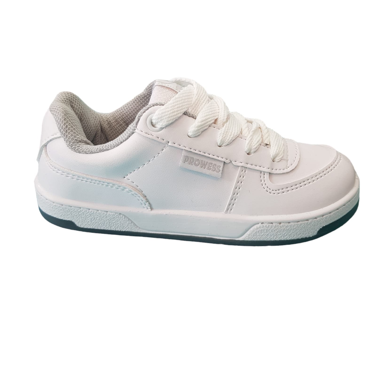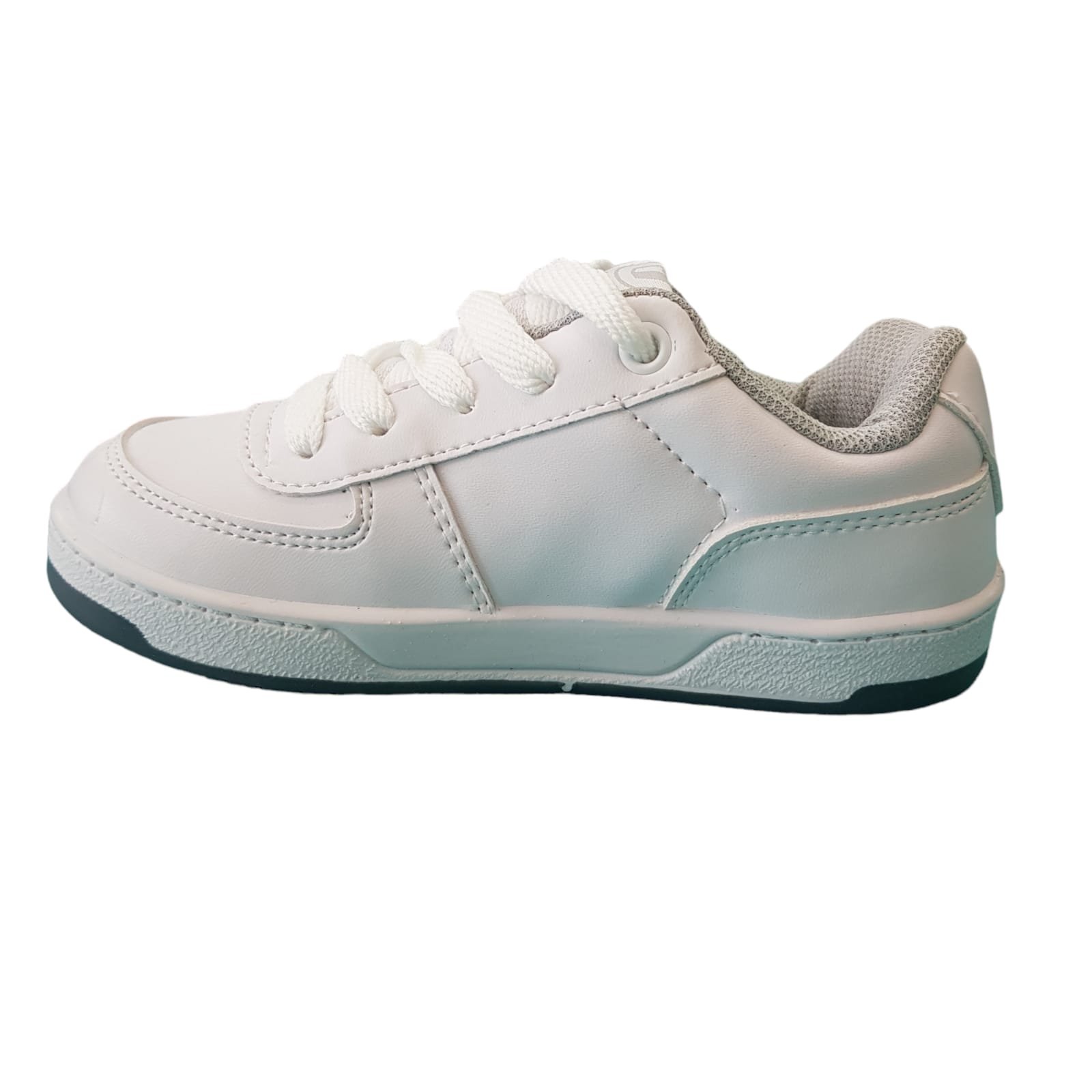 Zapatillas estilo casual. Con capellada símil cuero color blanco. Maleable y noble para su limpieza. Con cordones. Con planta de goma color gris liviana y flexible.