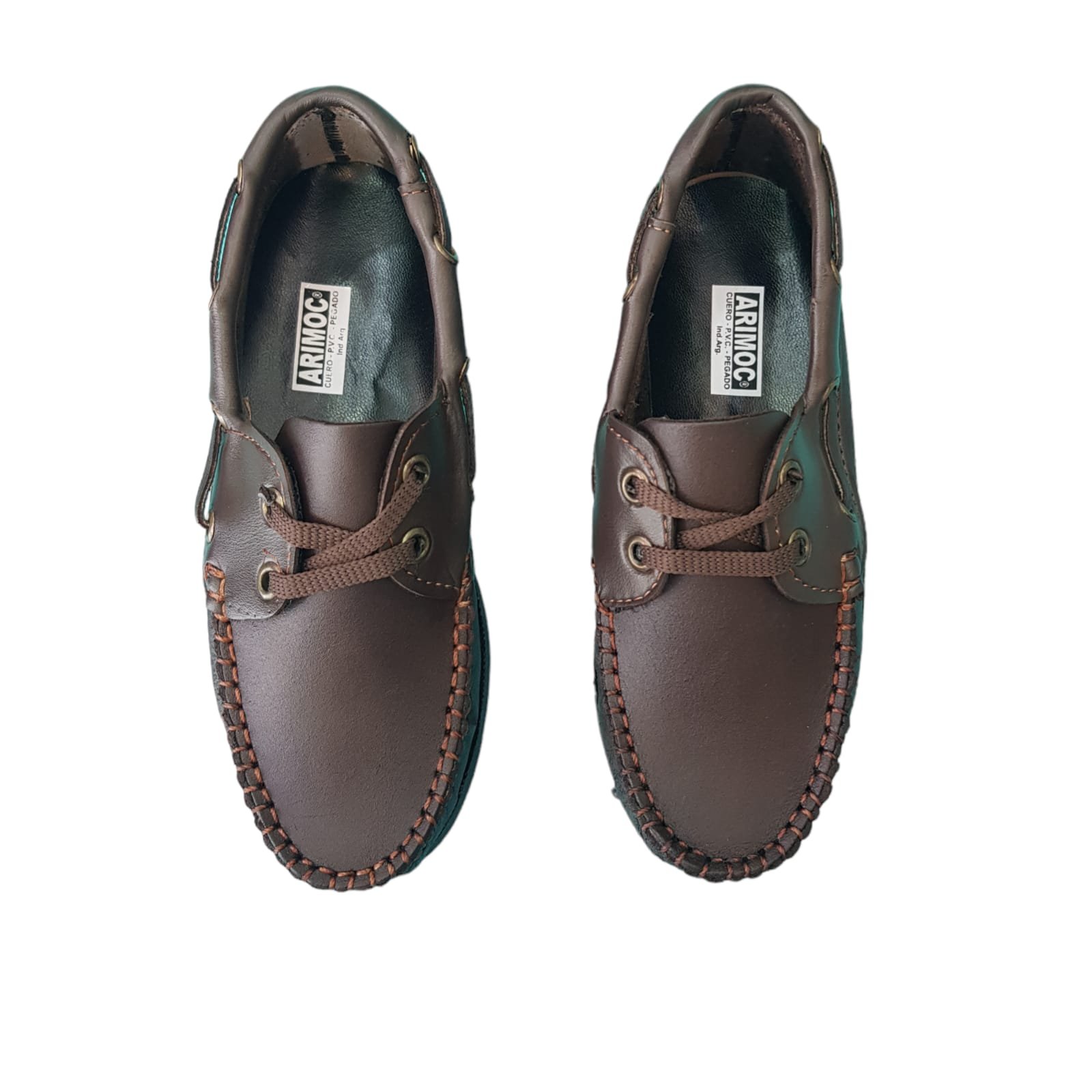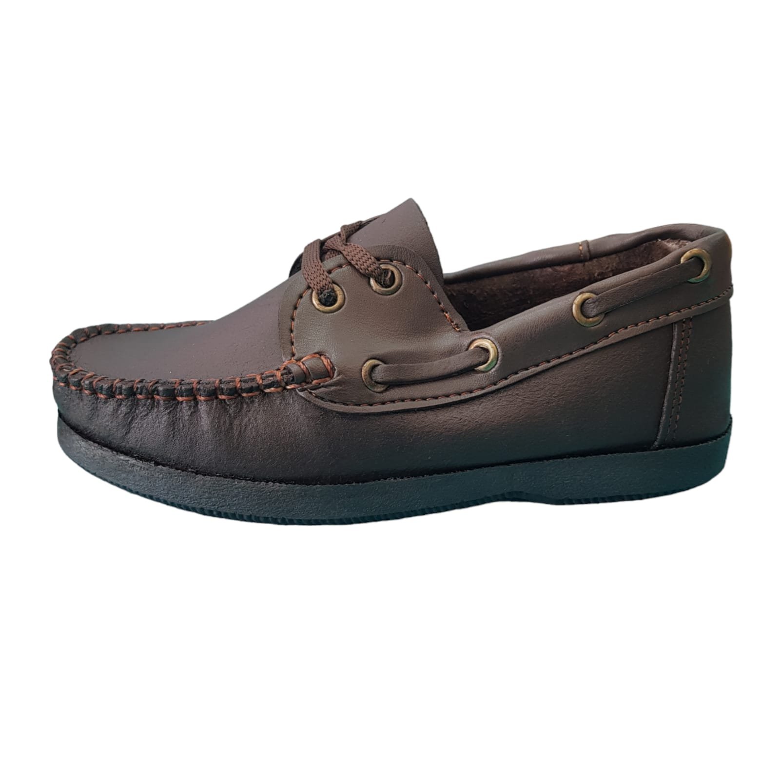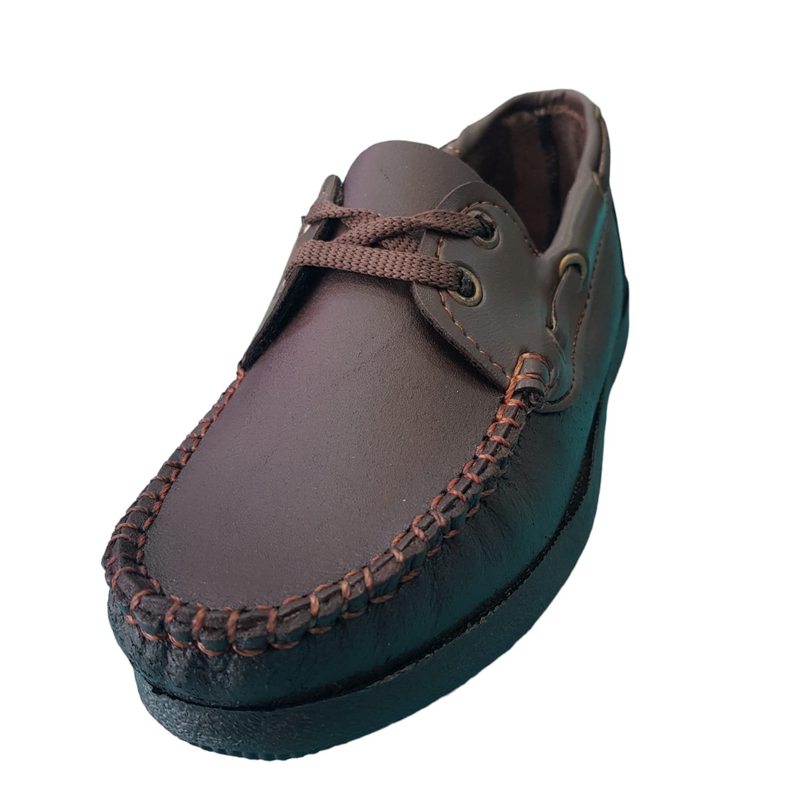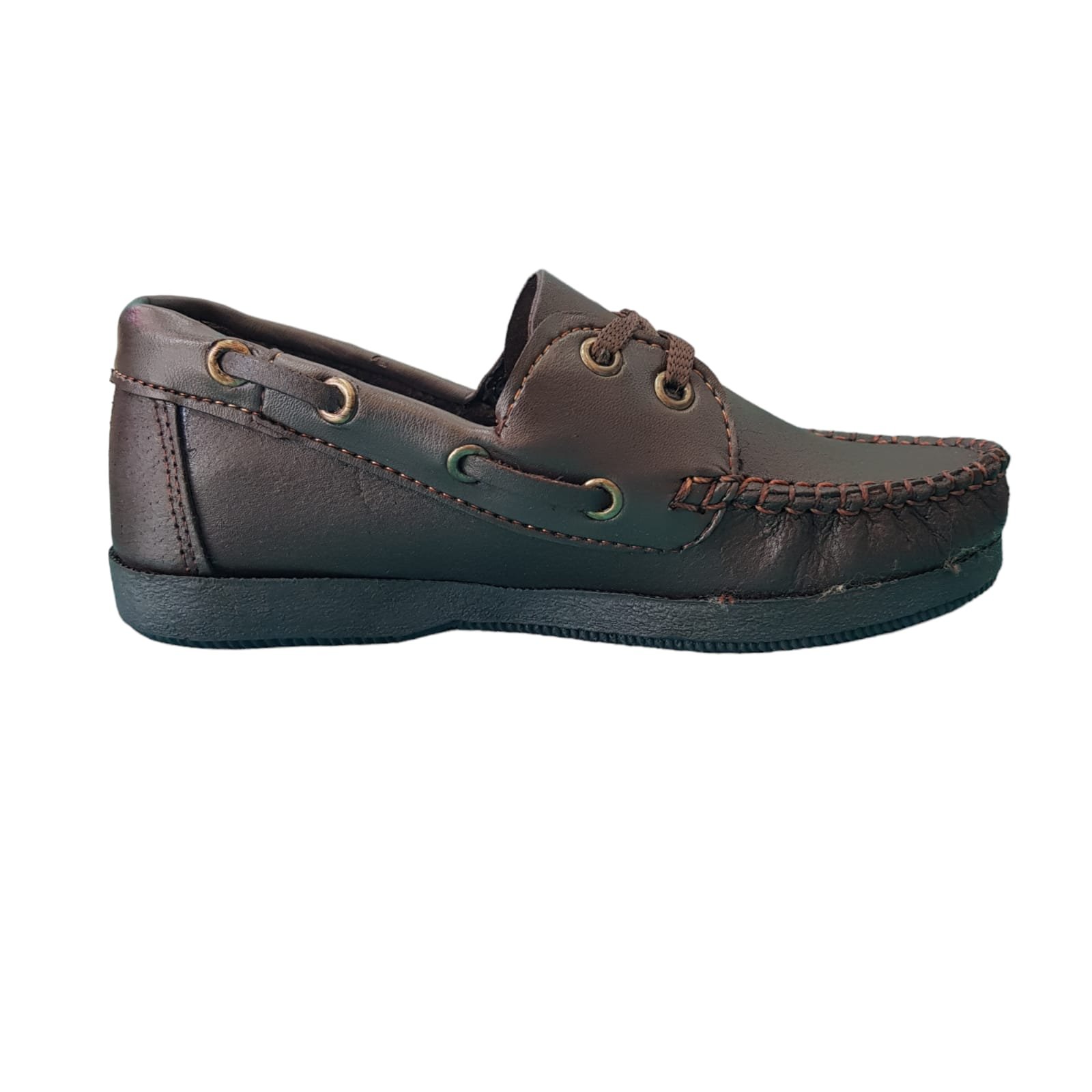 Zapatos colegial, estilo nautico, realizado con cuero y detalles en pvc, con cordones, planta plastica llanurada.