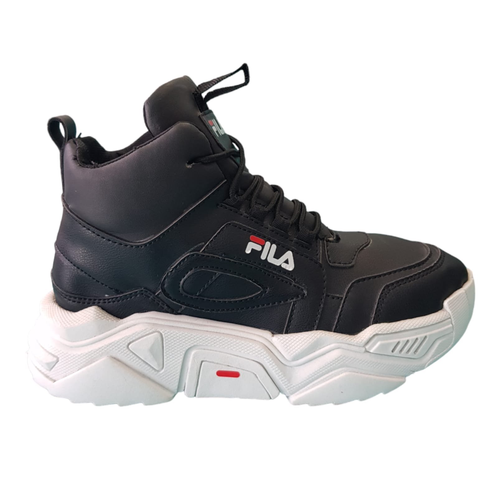 Zapatillas planta deportiva alta super liviana. Capellada símil cuero color negro caña alta tipo botita. Acordonada.