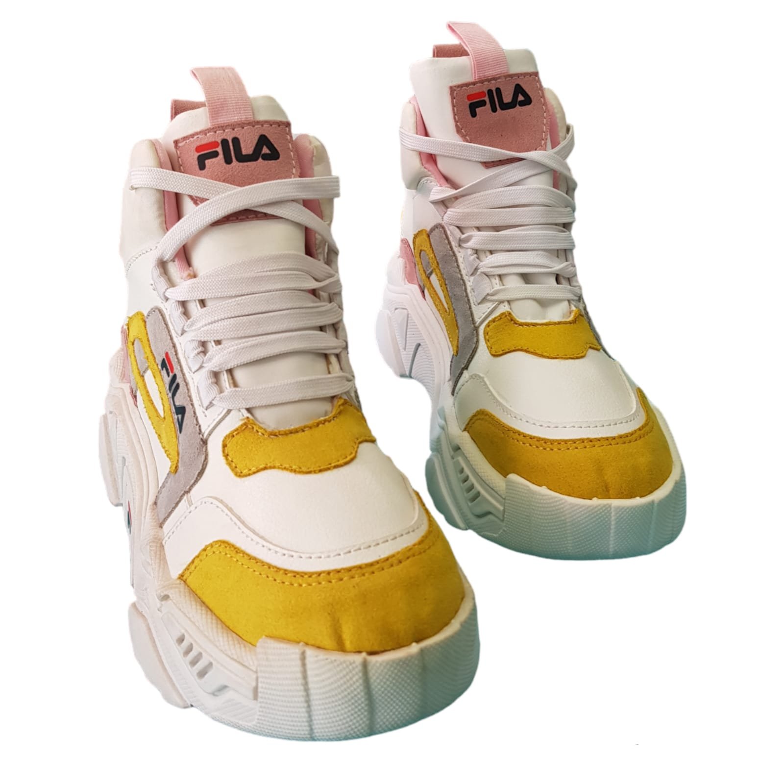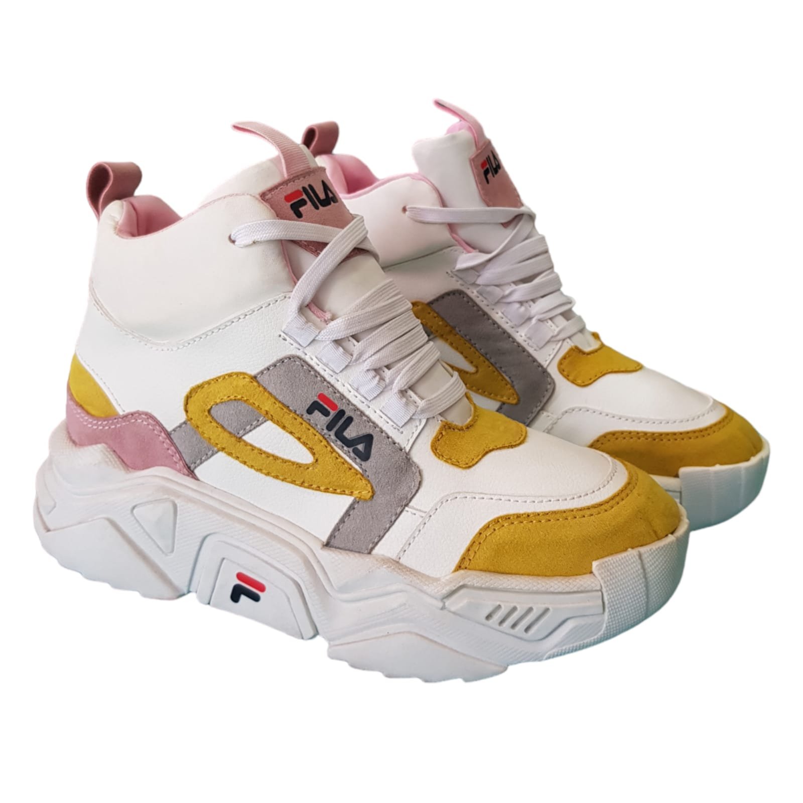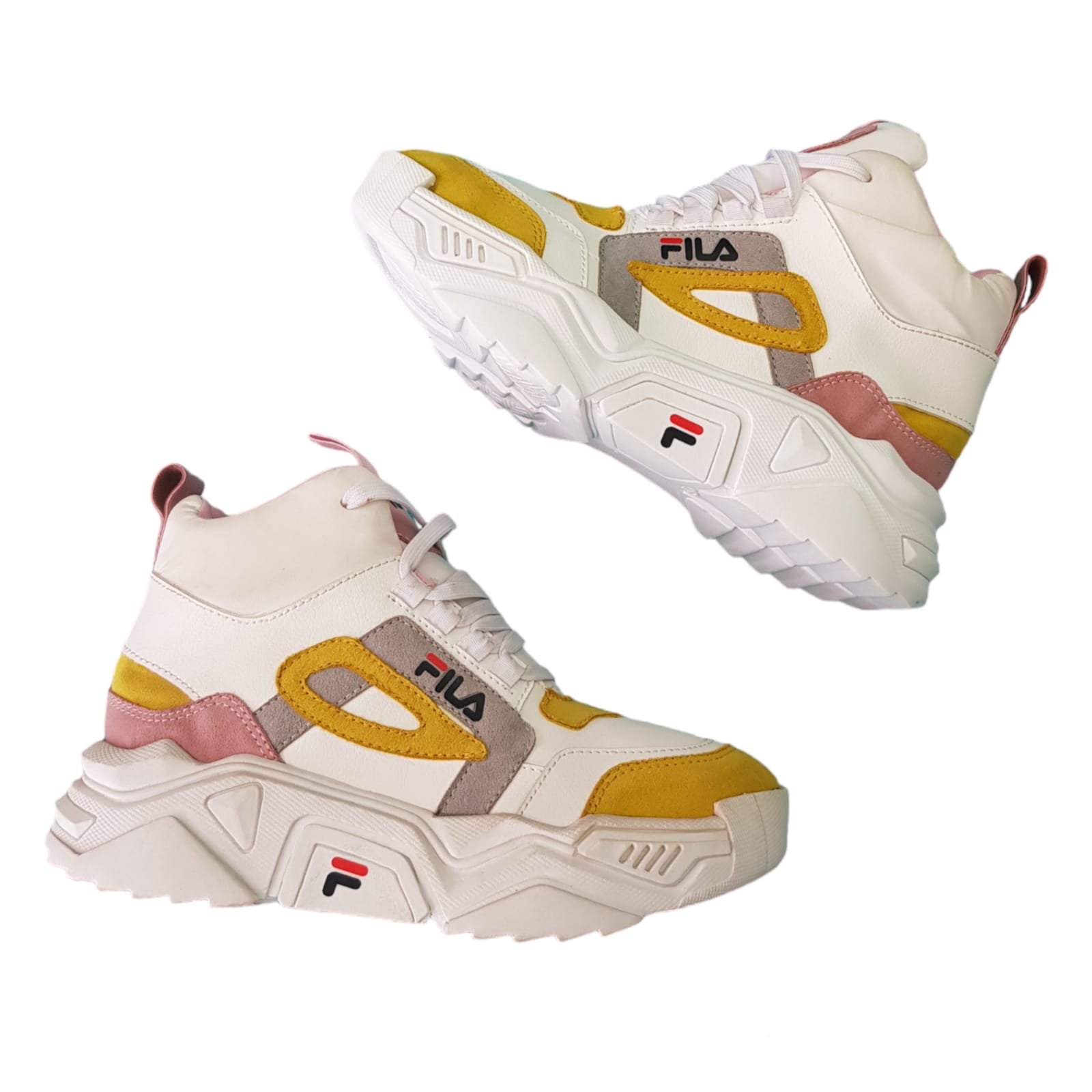 Zapatilla caña alta con cordones. Realizada con materiales sintéticos. Con planta de goma liviana y flexible.