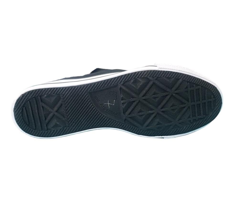 Zapatilla de lona acordonada caña alta color negro. Con puntera y planta de goma liviana y flexible.