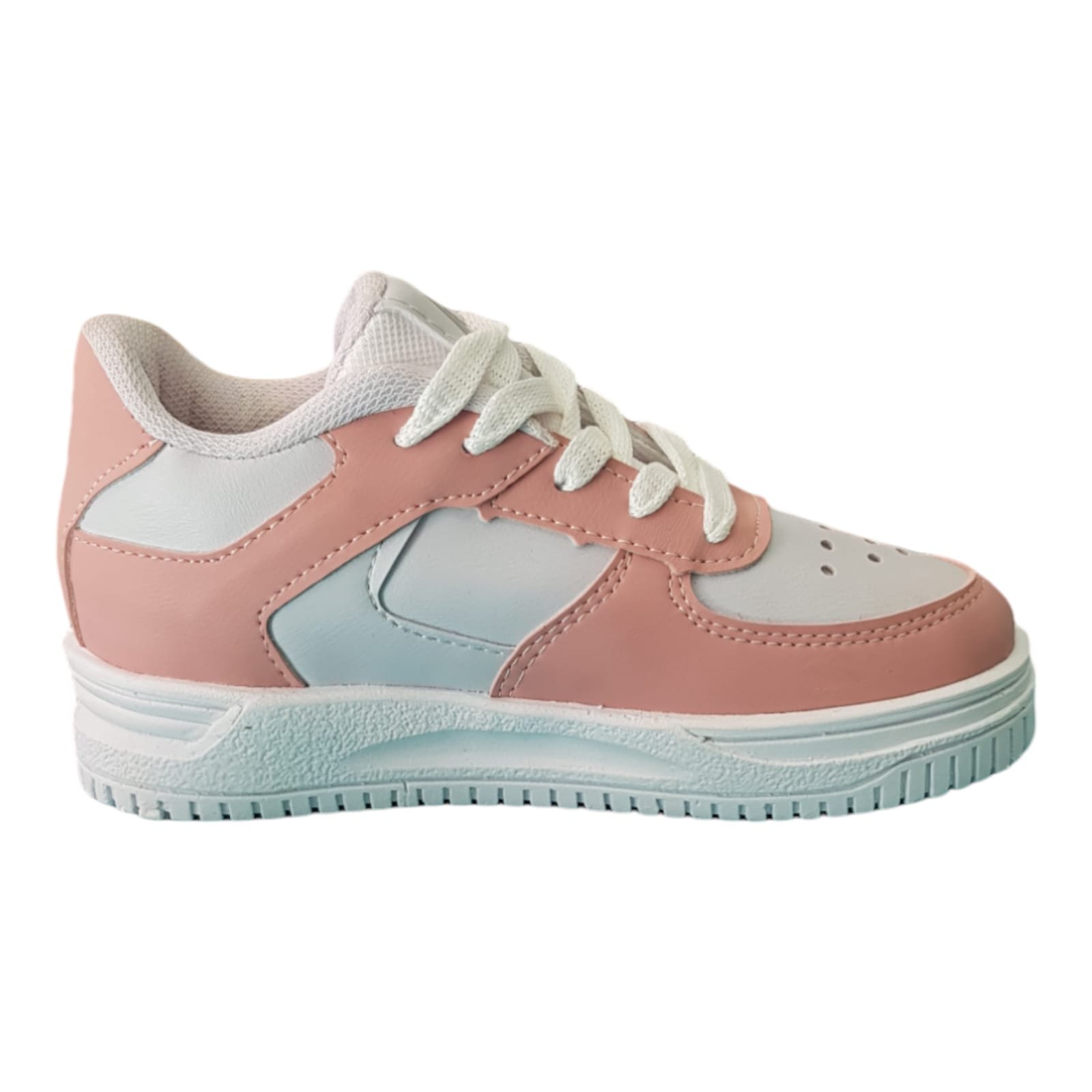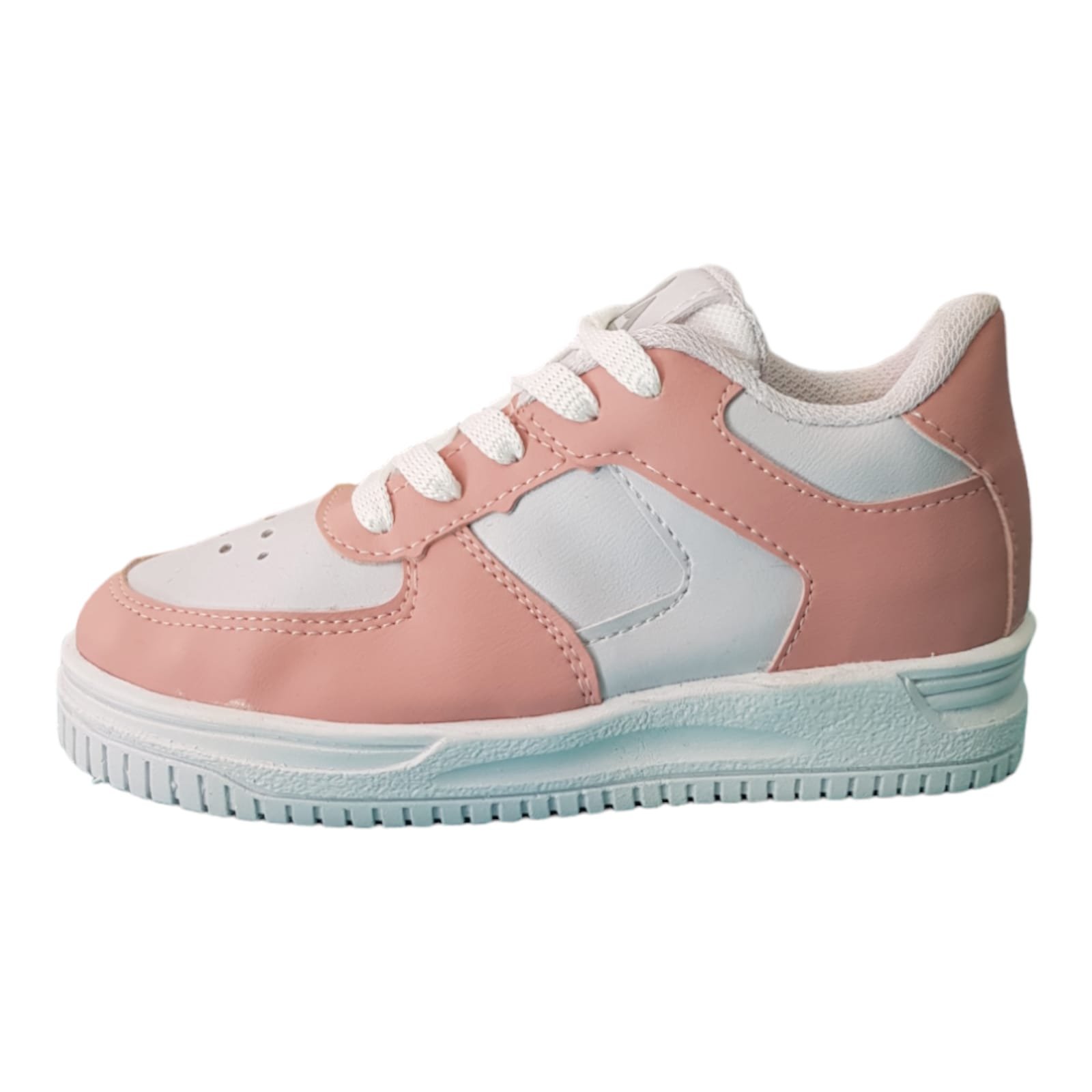 Zapatillas estilo casual. De la línea KIDS. Con capellada de materiales sintéticos. Símil cuero de color rosa y blanco. Con cordones y planta de goma dentada para un mejor agarre al suelo.