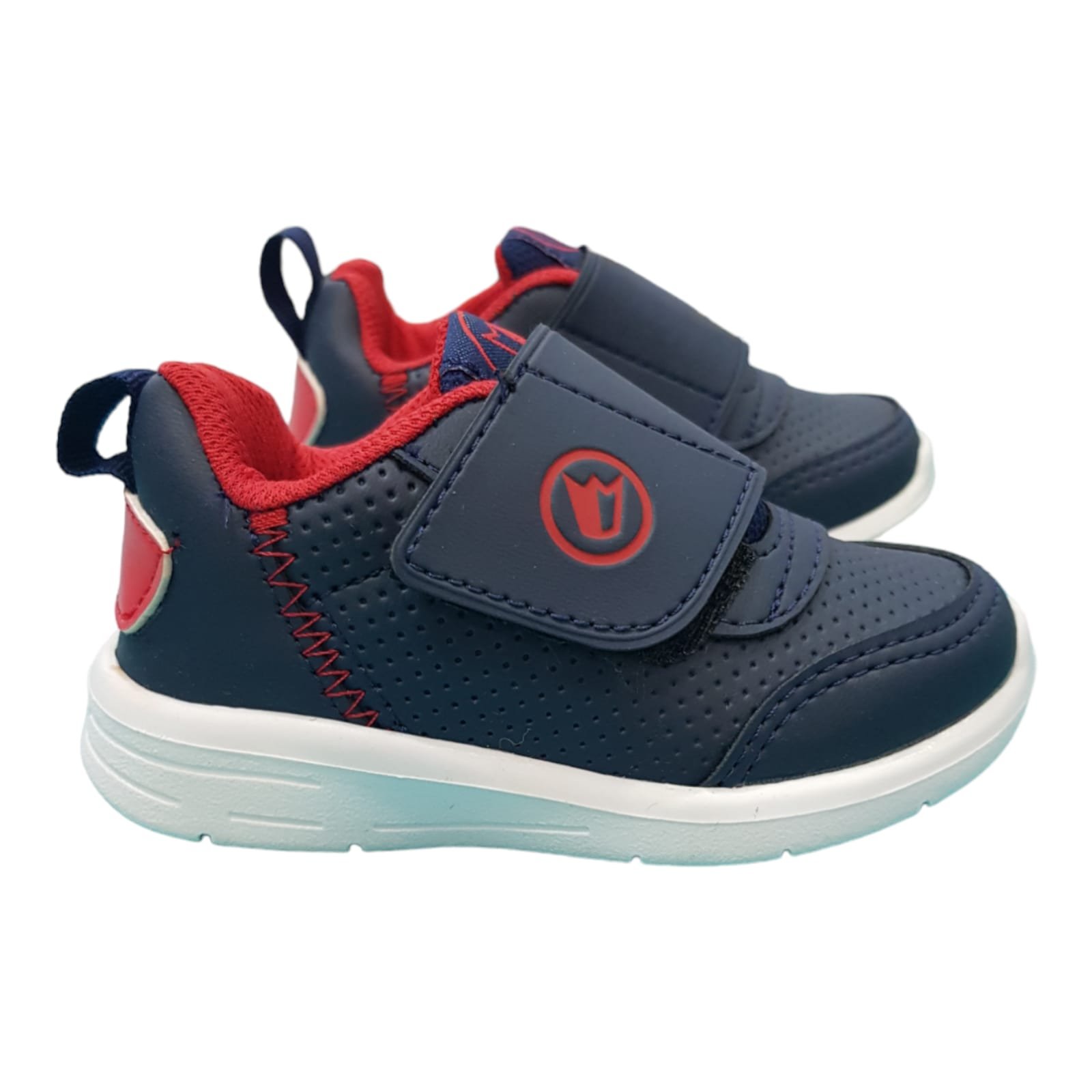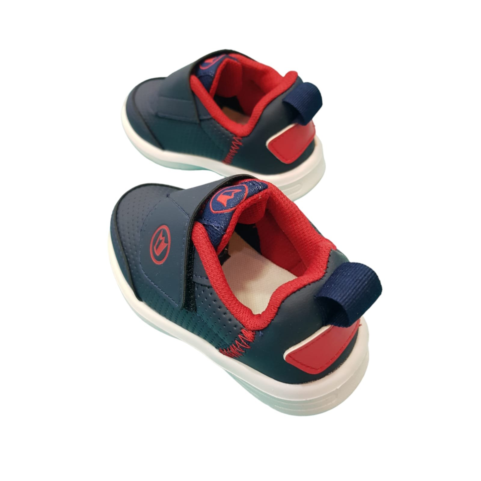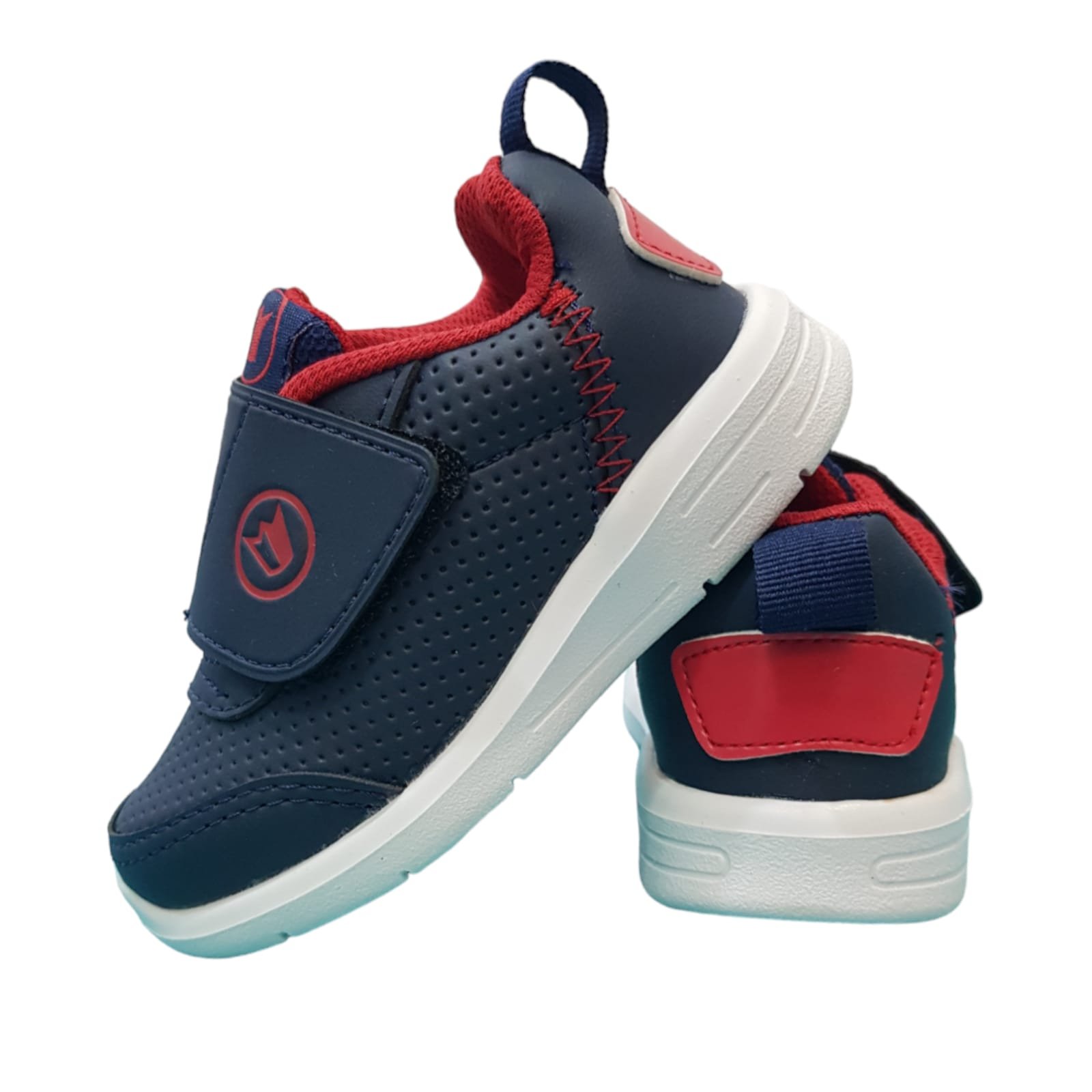 Zapatilla deportiva con velcro resistente. Capellada símil cuero con planta deportiva de goma liviana y flexible.