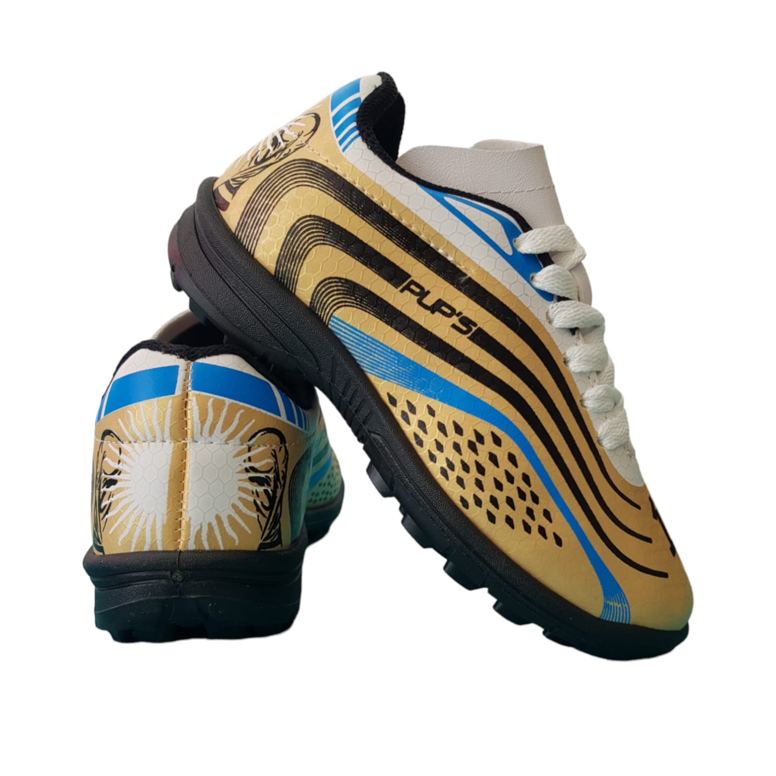 Botines fútbol 5 línea kids. Capellada símil cuero con cordones y planta dentada PVC.