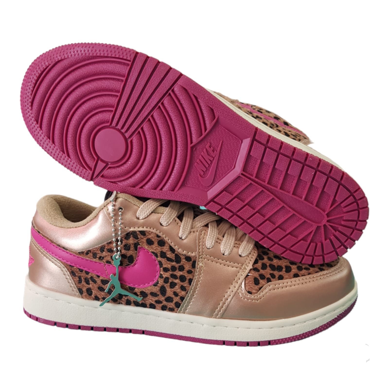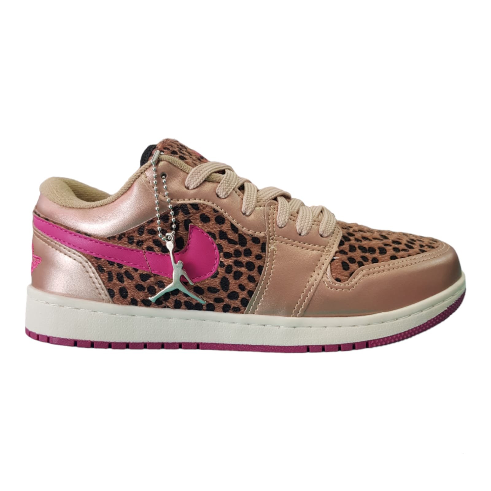Zapatillas casual sport con cordones de algodón color dorado y en color fucsia. Capellada combinada en materiales símil cuero dorado y material con pelos. Planta de goma liviana y flexible.