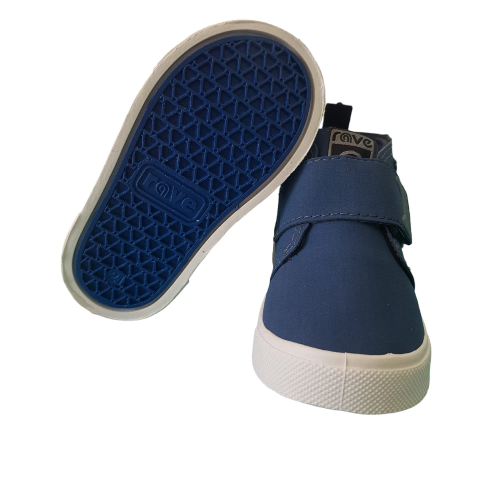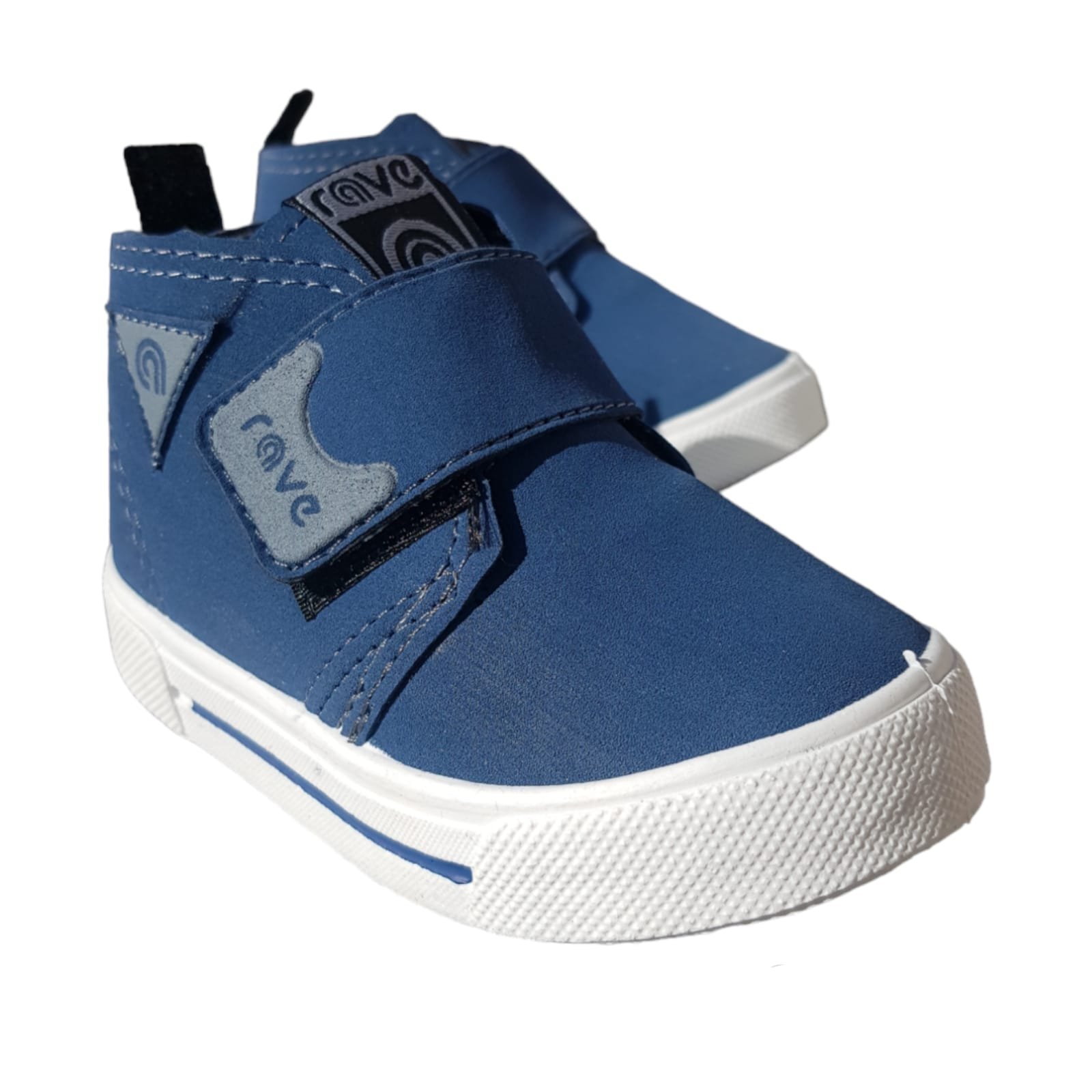 Botitas media caña con velcro ancho de agarre. Capellada de goma color azul con interior de material sintético y térmico. Planta de goma liviana y flexible.