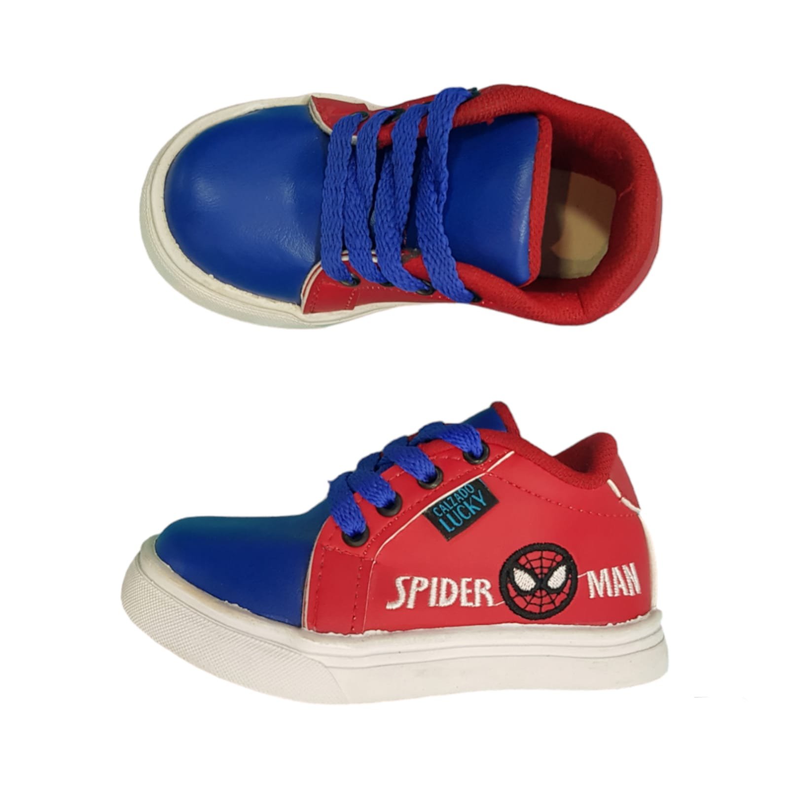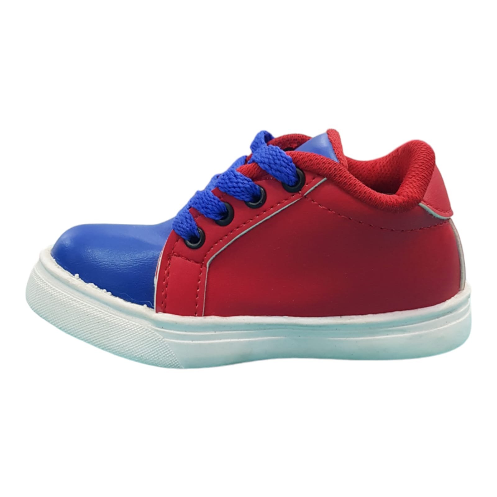 Zapatillas línea baby. Con cordones y capellada símil cuero resistente. Con bordados laterales. Planta de goma liviana y flexible.