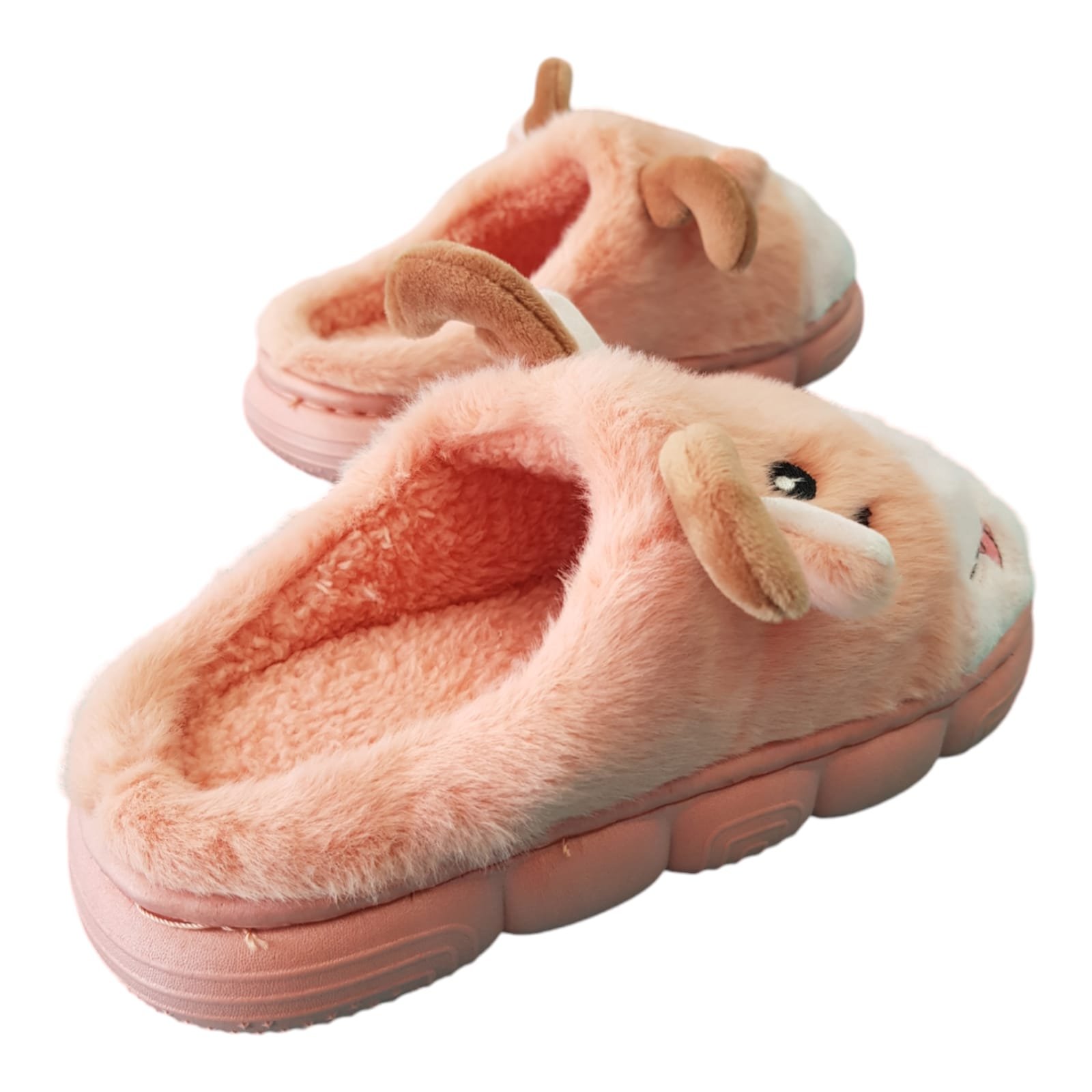 Pantufla destalonada de la línea kids. Confeccionada completamente con peluche. Planta de goma con altura. Super liviana y flexible.
