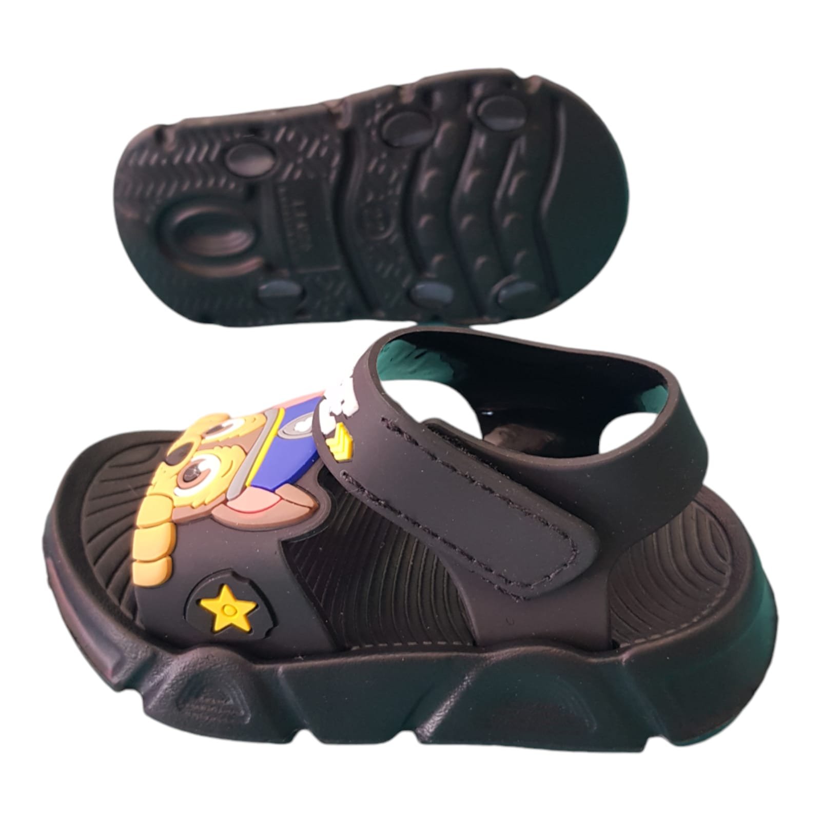 Agua sandalia, faja con agarre de velcro resistente. Confeccionada en caucho ultra liviano y flexible.