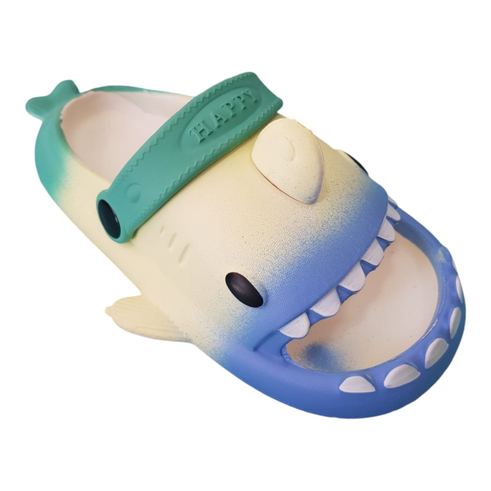 Sueco con forma de tiburón con agarre de talón. Confeccionada en goma EVA super liviana y flexible.