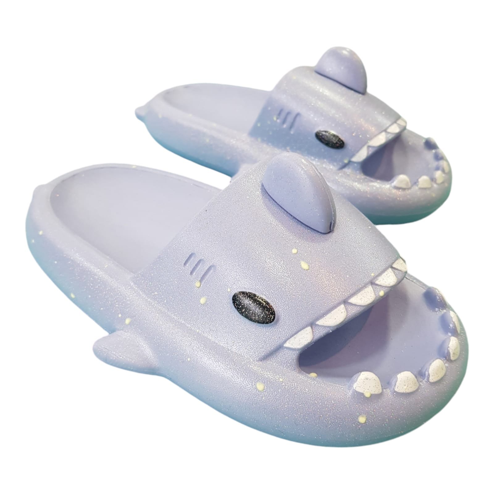 Chanclas forma tiburón de goma importada liviana, flexible, full color y con el detalles que brillan en la oscuridad.