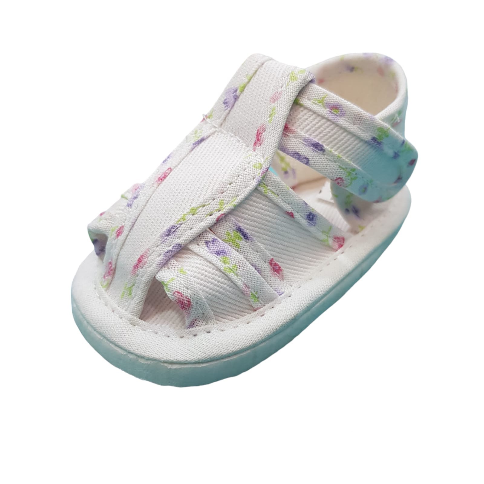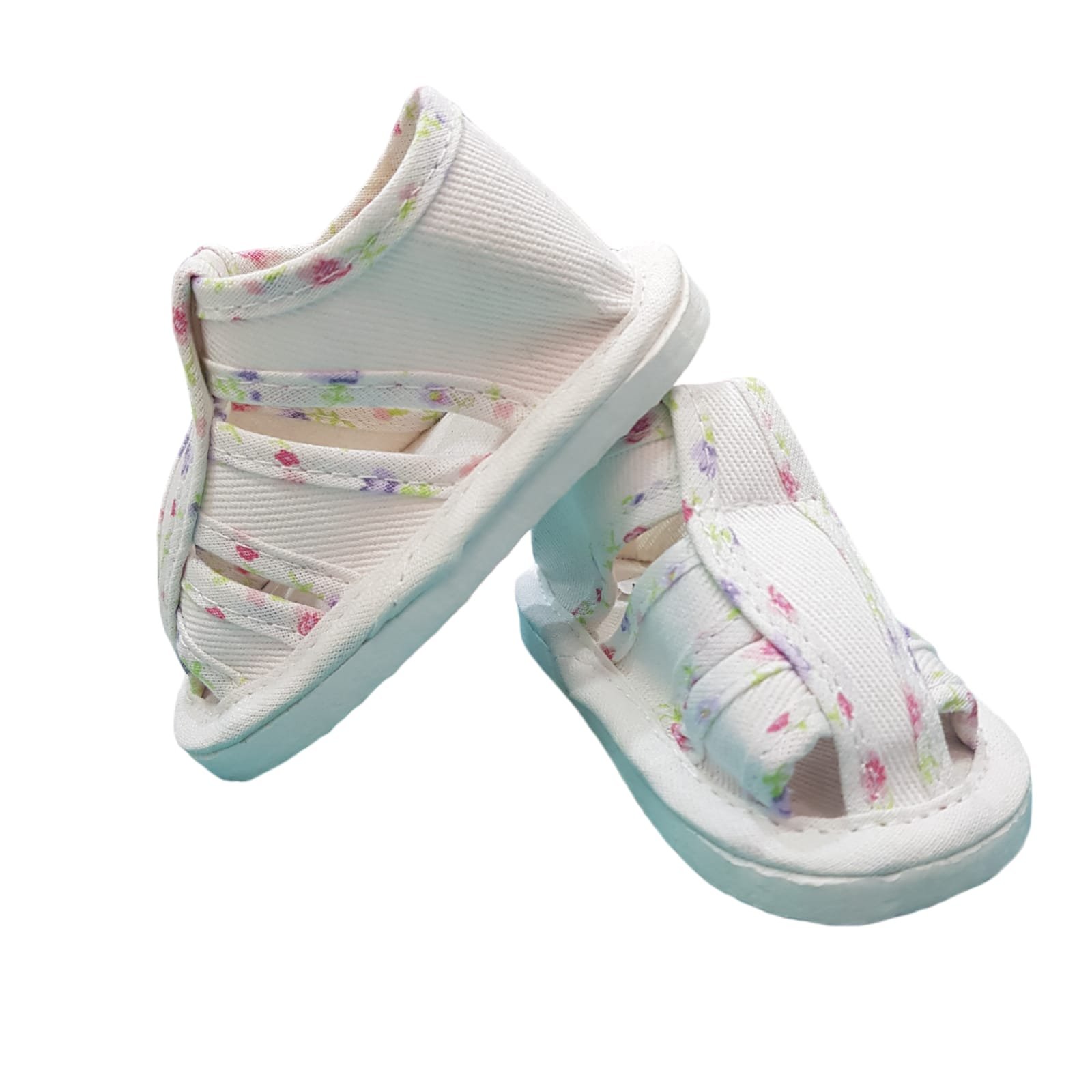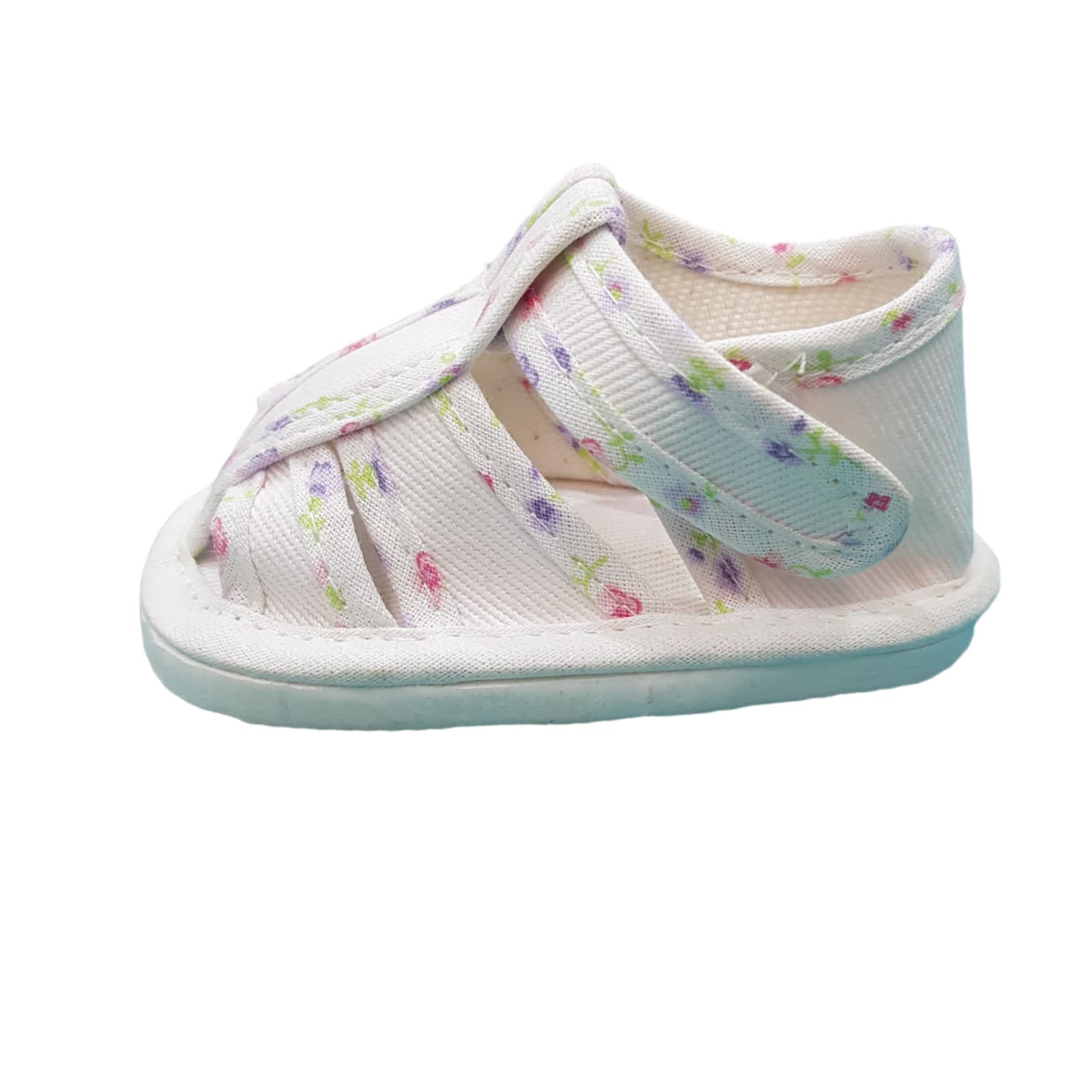 Sandalia de lona no caminante estilo franciscana con planta de goma eva y ribete floreado.