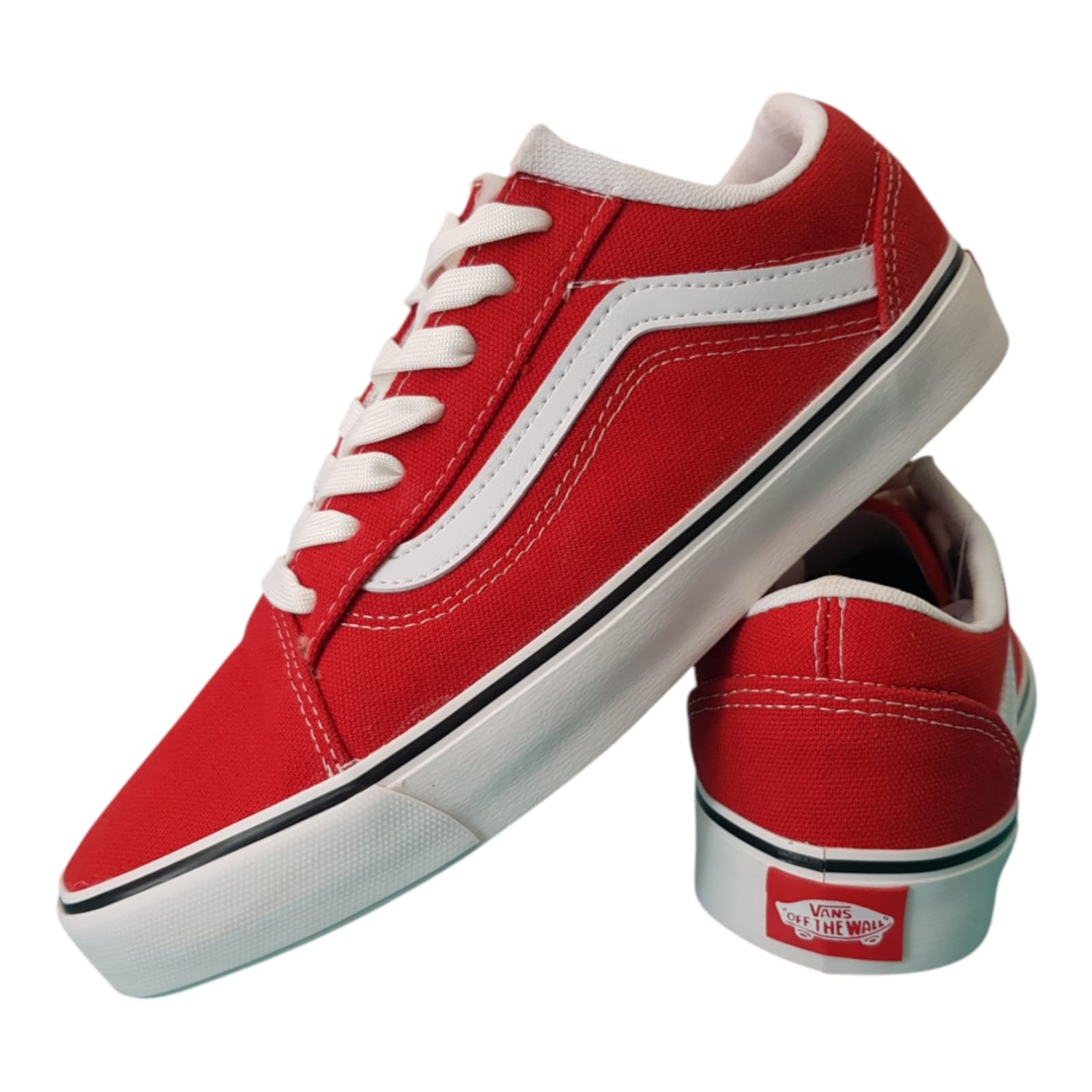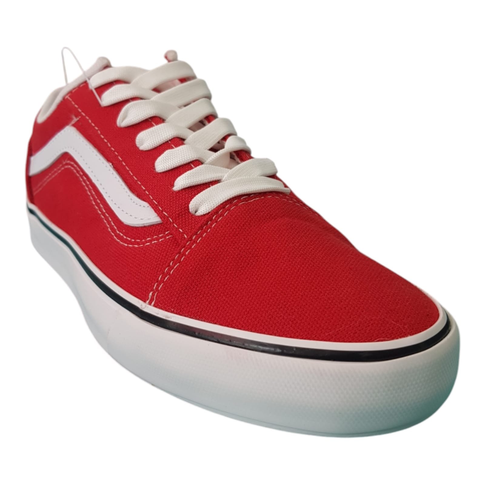 Zapatillas casuales con cordones y planta de goma. Capellada de lona color rojo.