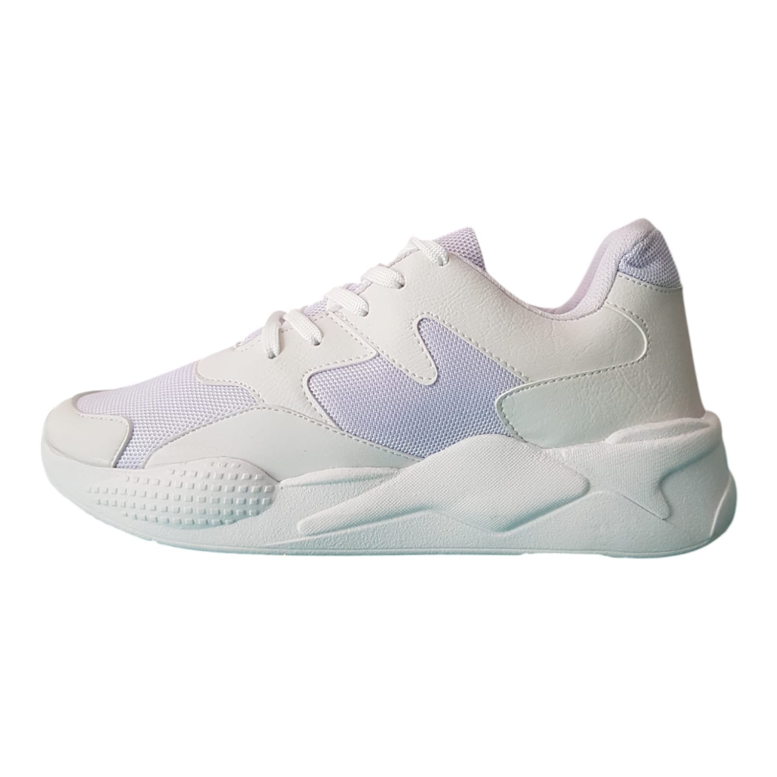 Zapatillas deportivas. Con planta alta de goma liviana y flexible. Capellada símil cuero con cordones sintéticos para mejor agarre.