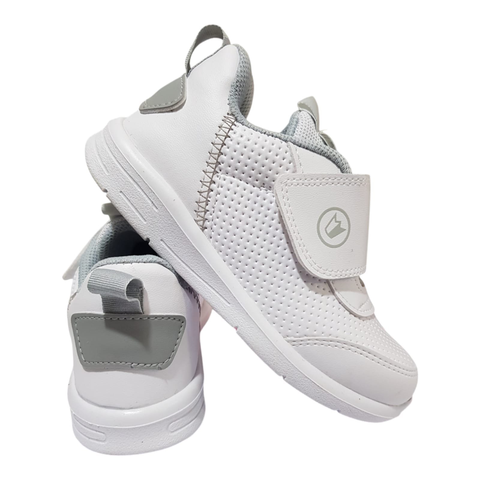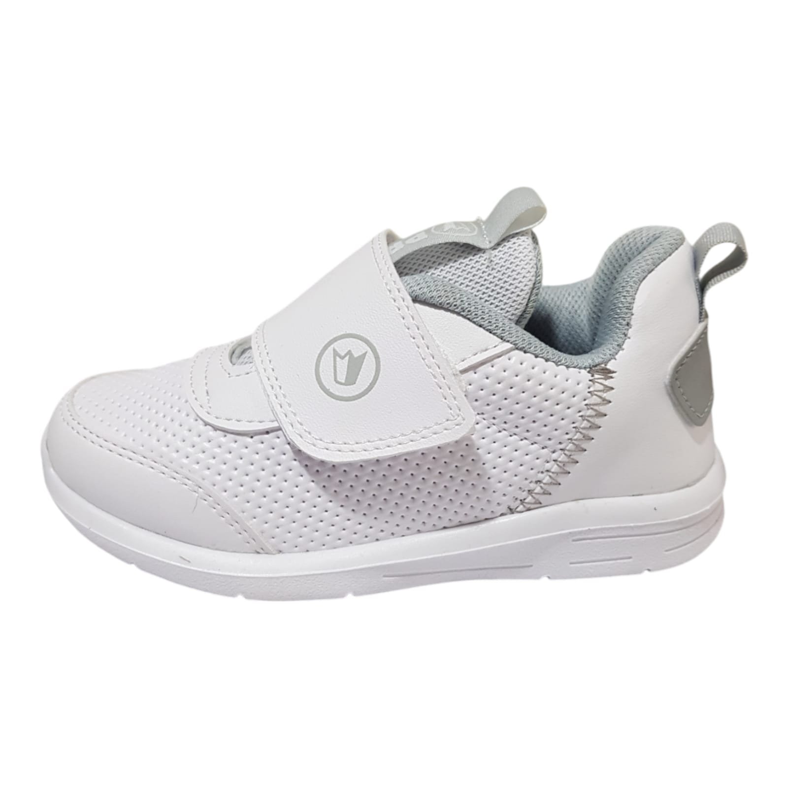 Zapatillas línea baby colegial. De capellada símil cuero con un velcro resistente. Planta de goma liviana y flexible.