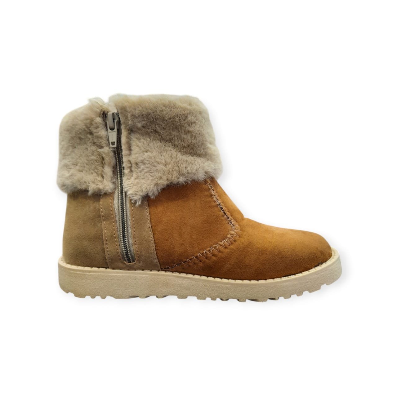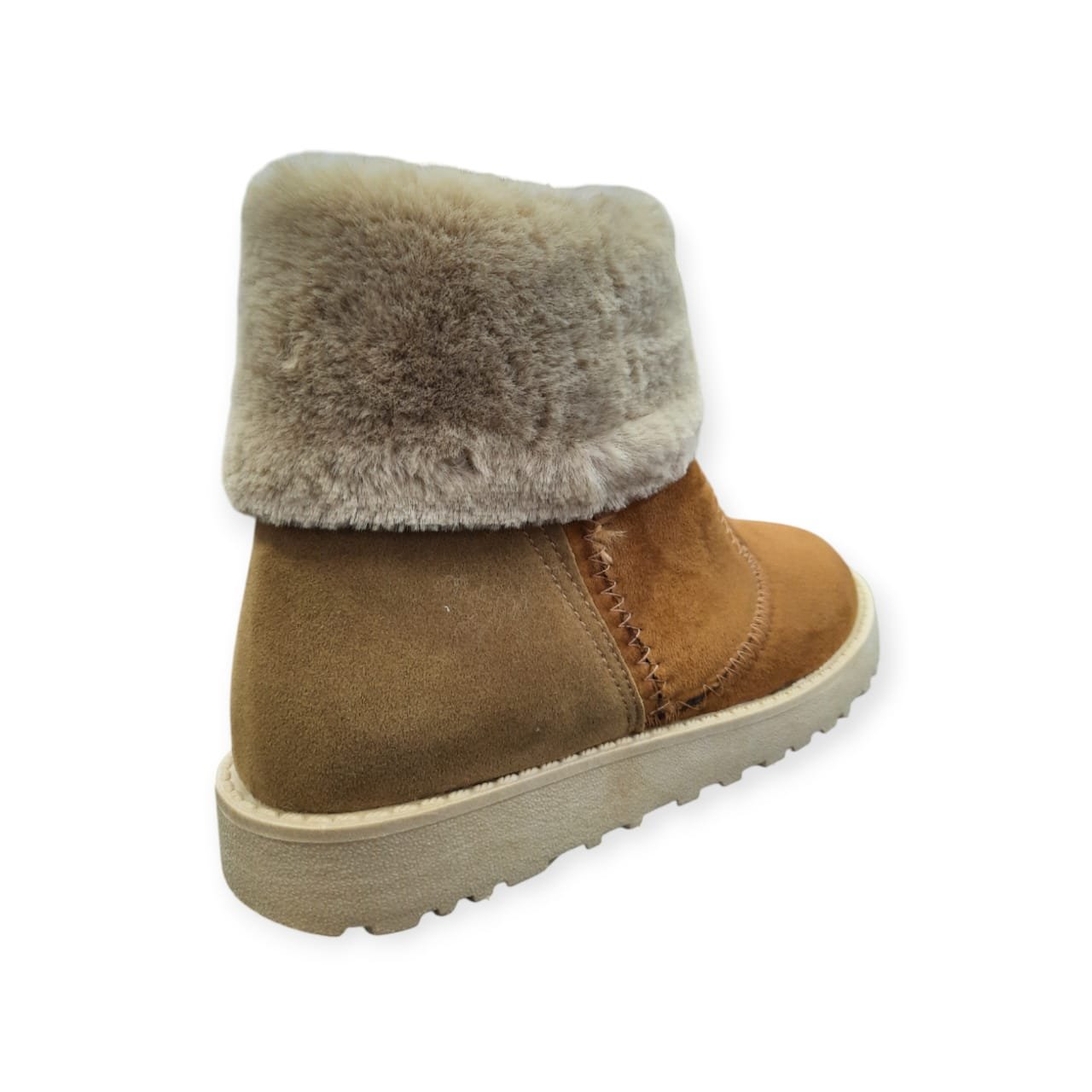 Botas media caña con piel adherida al material. Capellada de materiales suaves, flexibles y calentitos. Cierre interno para mas practicidad. Y base firme con dibujo en la planta para mejor agarre al suelo en color beige.