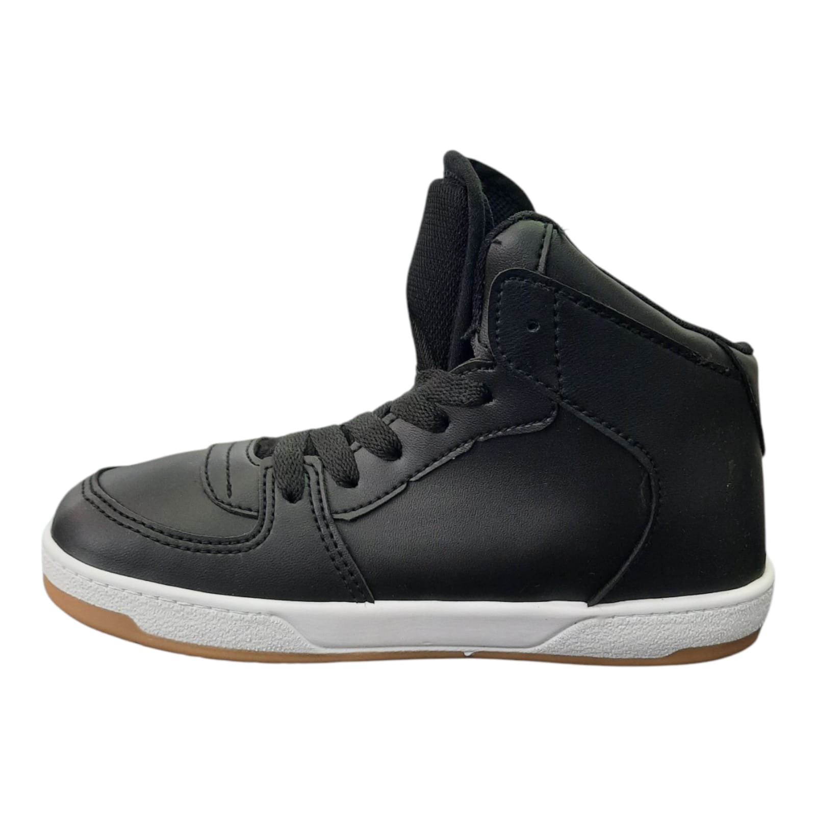 Botitas caña media con cordones y capellada de símil cuero. Planta de goma en color blanco y caramel liviana y flexible.