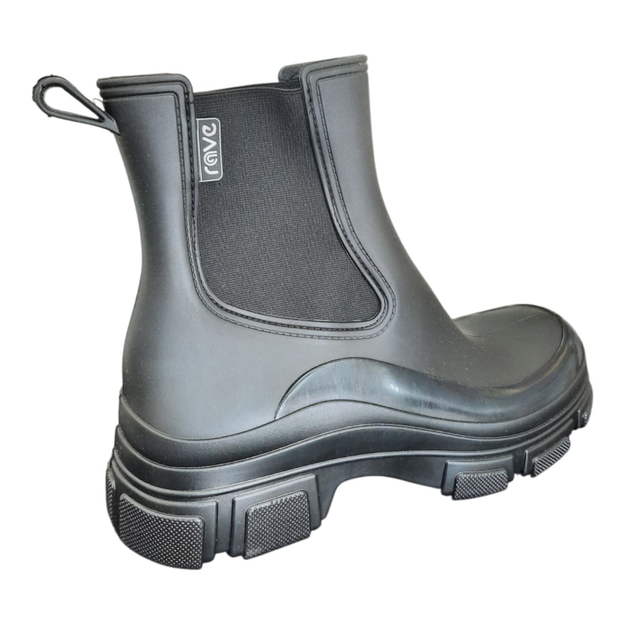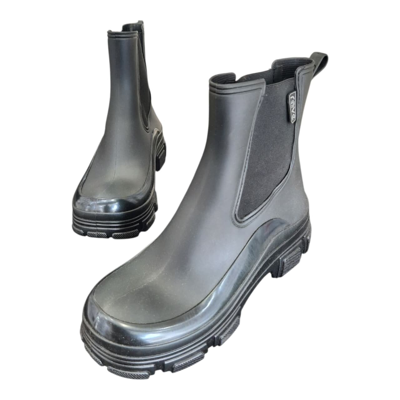 Botas de lluvia de goma impermeable. De caña media con elásticos laterales para un mejor calce. Con planta ranurada para un mejor agarre al suelo. Ideales para días de lluvia.